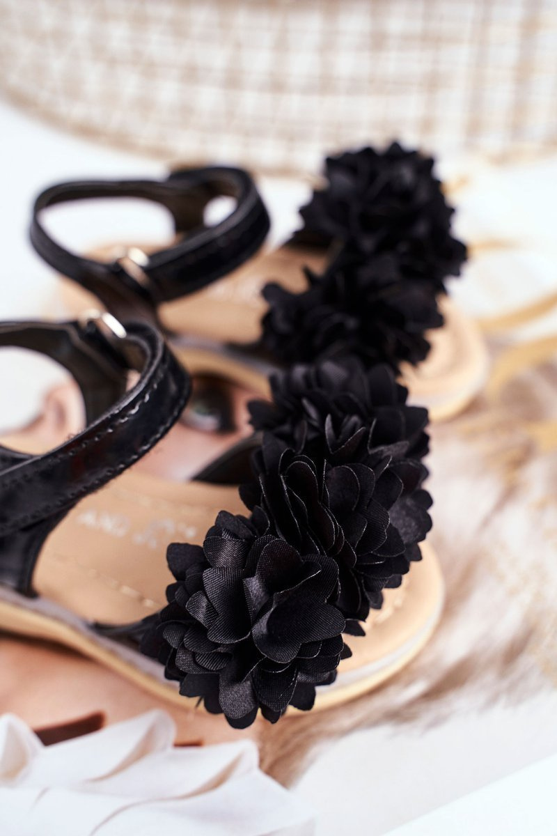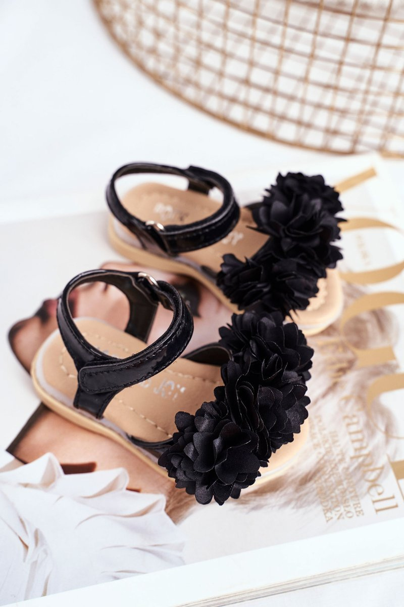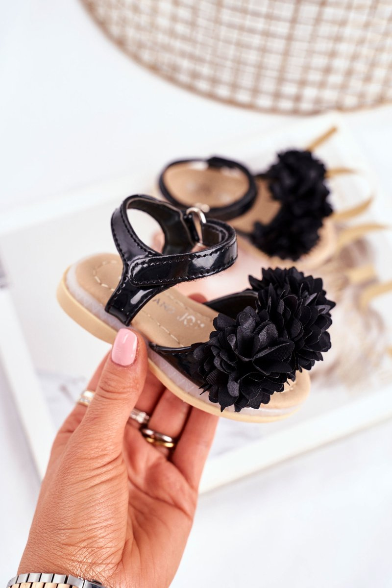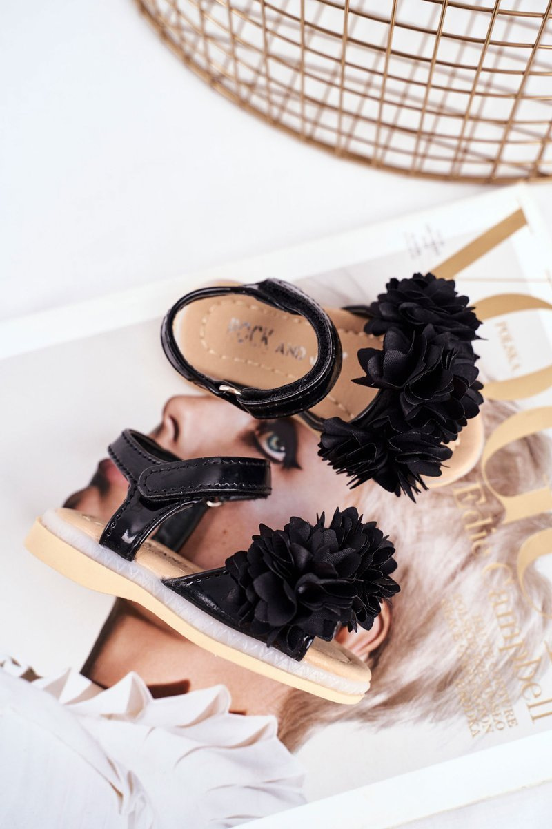 Дитячі босоніжки на липучці світяться чорні Мілена