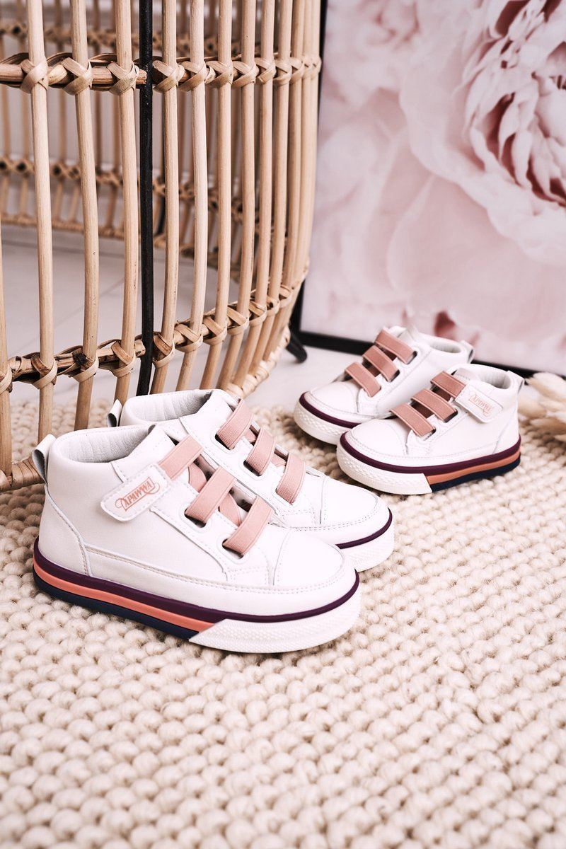 Дитячі високі кросівки з рантом білі рожеві Baxter