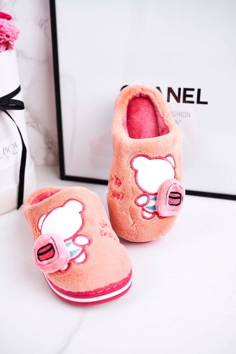 Дитячі домашні тапочки з ведмедиком яскраво-рожевий Go To School