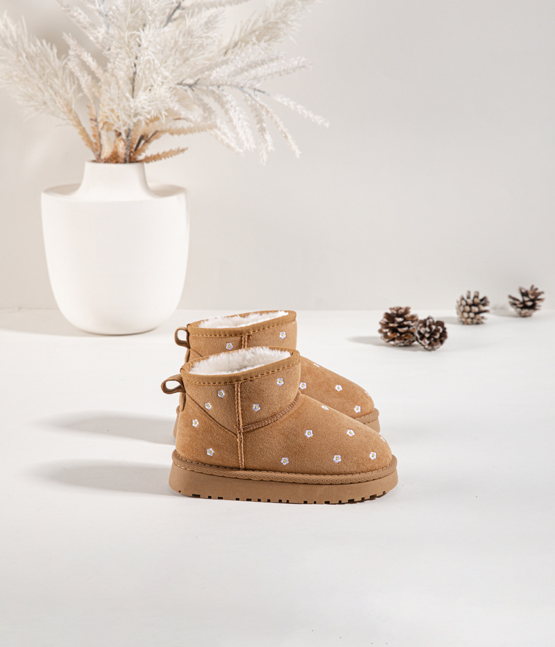 Дитячі зимові чоботи поєднують комфорт, тепло і милий вигляд. Модель, прикрашена делікатними вишитими квітами, виглядає особливо жіночно і стильно. М'яке хутряне підкладка всередині взуття забезпечує приємне тепло і комфорт у холодні дні, а гумова підошва забезпечує стабільність і хороше зчеплення з поверхнею. Це ідеальне зимове взуття, яке підходить для щоденних прогулянок і зимових ігор, гарантуючи малюкам комфорт і безпеку. При виборі розміру, будь ласка, дотримуйтесь таблиці розмірів. Будь ласка, зверніться до розмірної сітки при виборі розміру.
