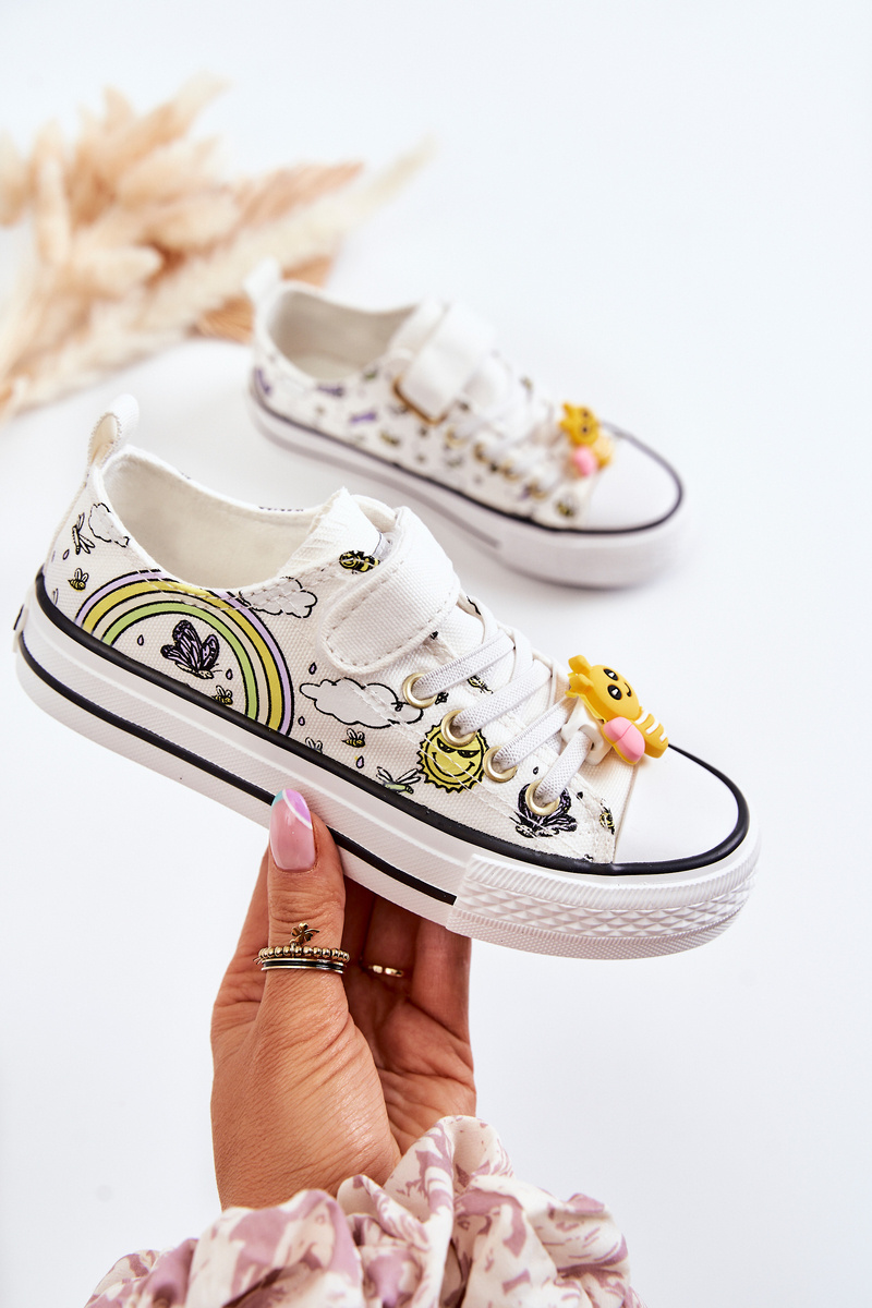 Чудові текстильні кросівки мають милий гумовий елемент на гумках, що імітує шнурки у формі бджоли. Носок посилений. Нековзна підошва ідеально підходить для ігор у дворі. Застібка на липучці. М'яка, матеріальна устілка забезпечить комфорт на кожному кроці. При виборі розміру скористайтеся таблицею розмірів.