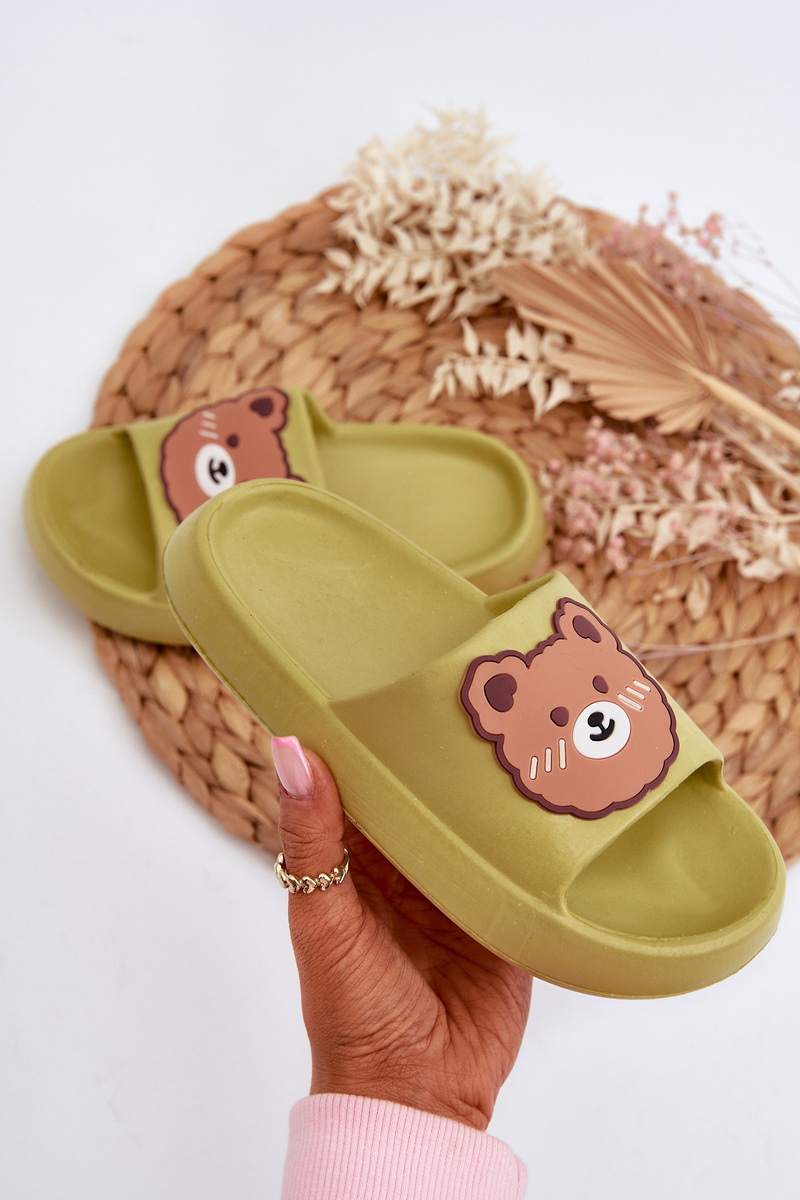Дитячі легкі тапочки з зеленим ведмедиком Lindeheta