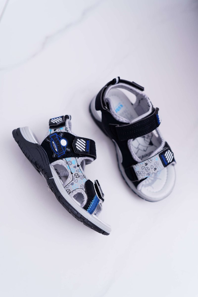 Дитячі молодіжні босоніжки на липучці Чорні Rexio
