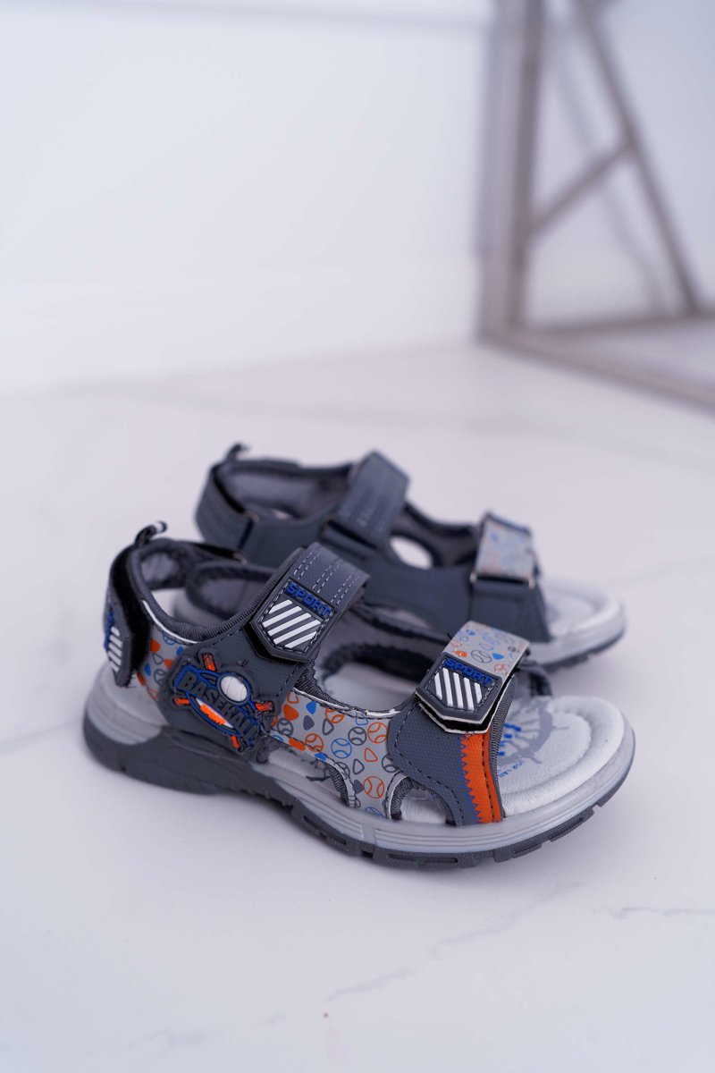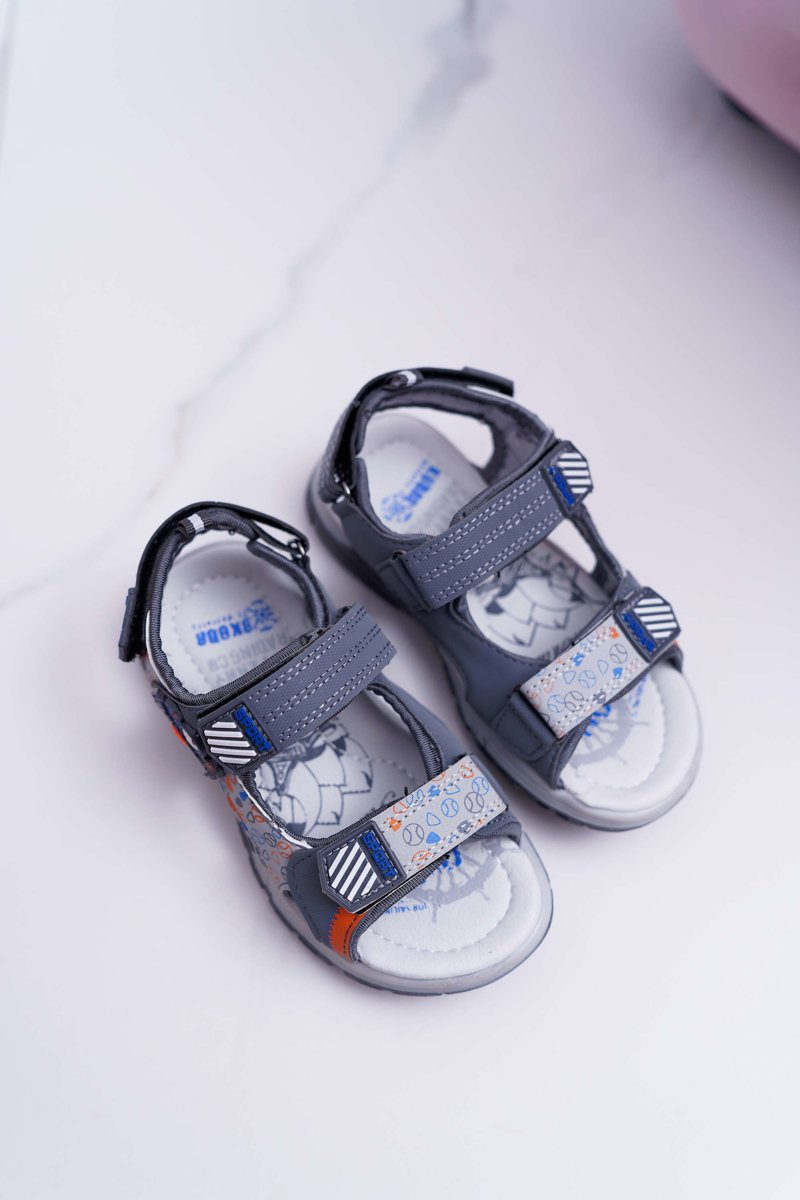 Дитячі молодіжні хлопчачі босоніжки на липучці сірий рекс.