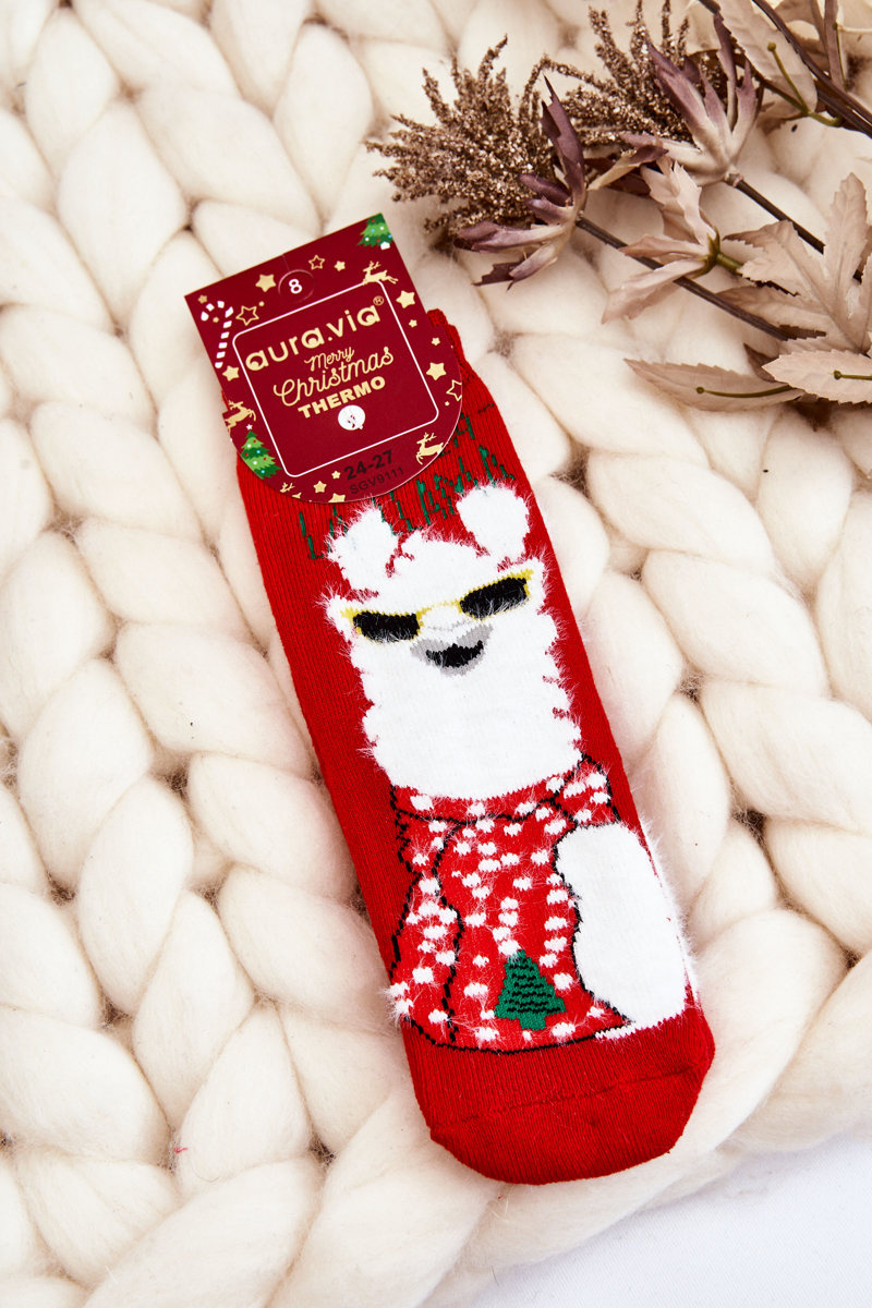 Дитячі новорічні бавовняні термоактивні шкарпетки Альпака Червона