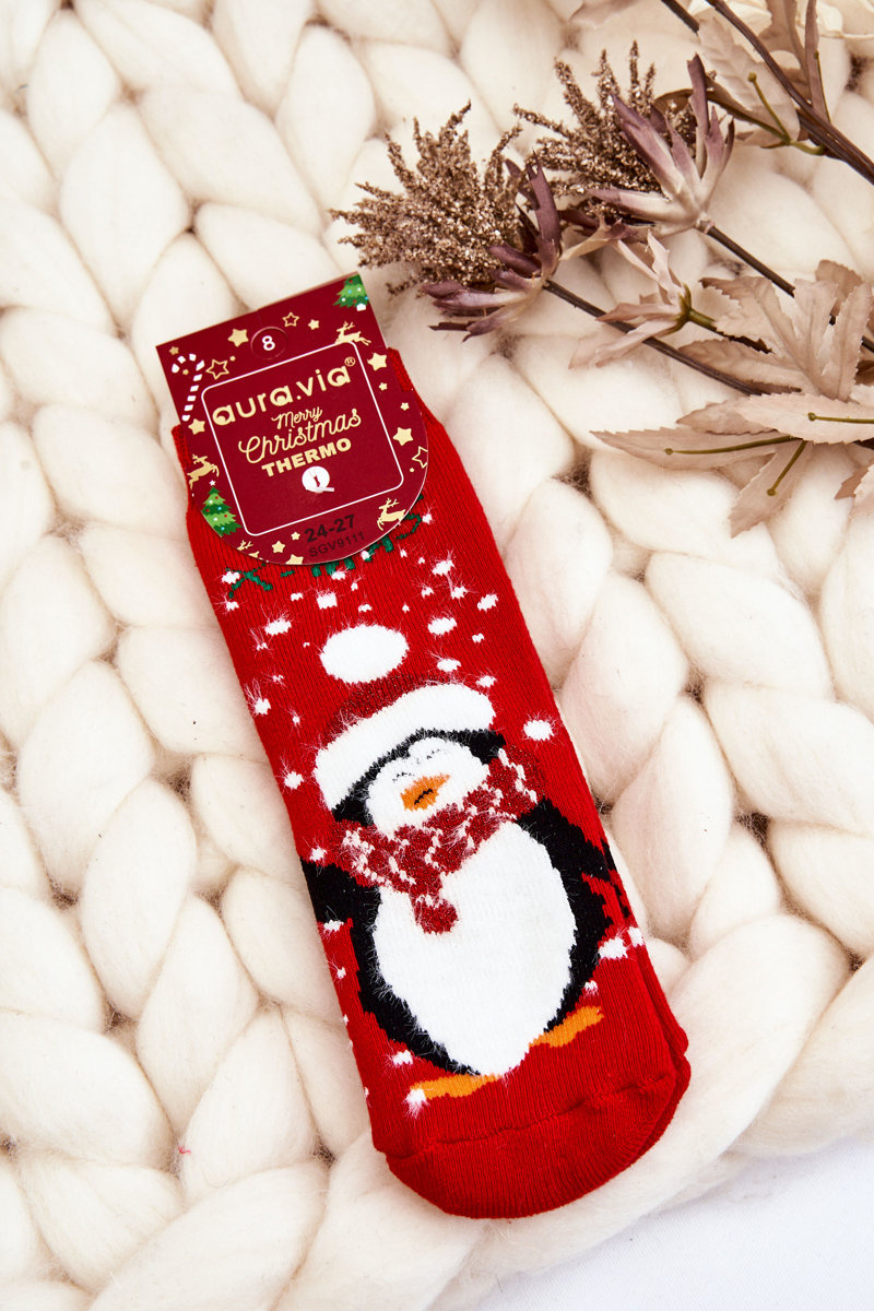 Дитячі новорічні бавовняні термоактивні шкарпетки Penguin Red