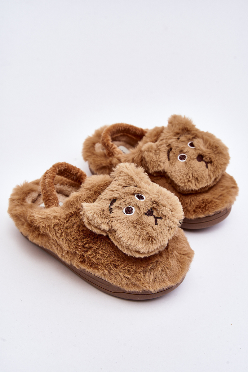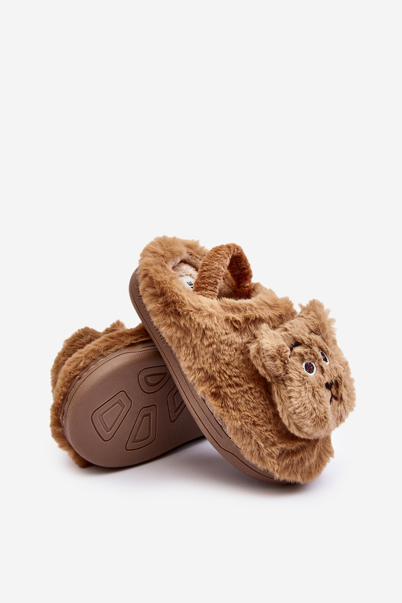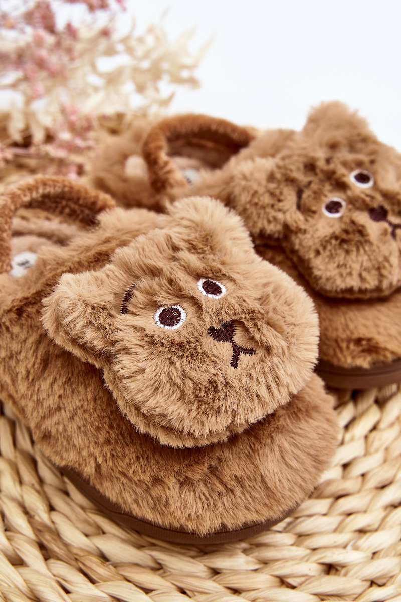 Дитячі пухнасті тапочки з ведмедиком коричневі Dicera