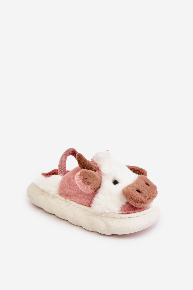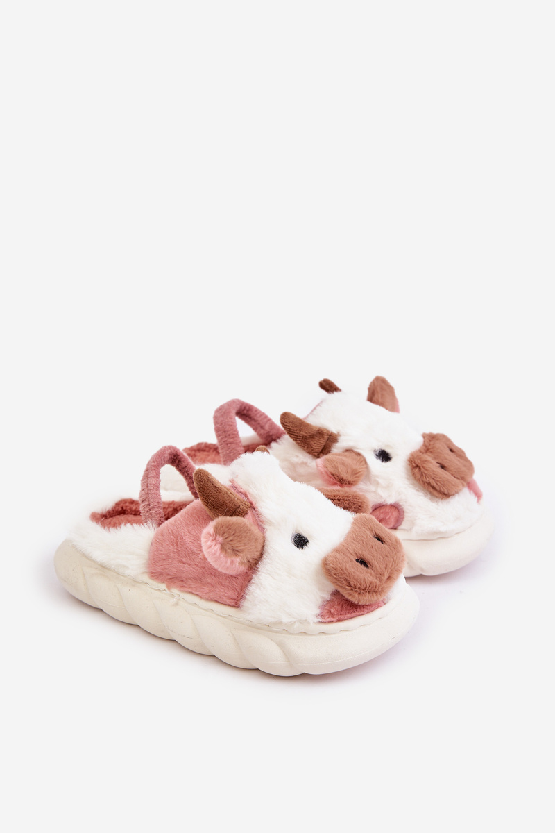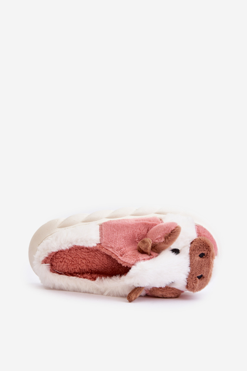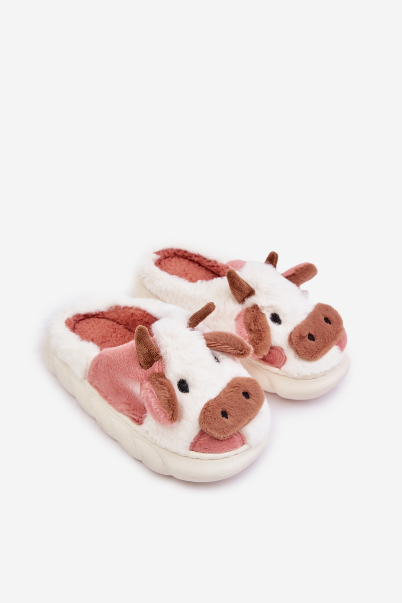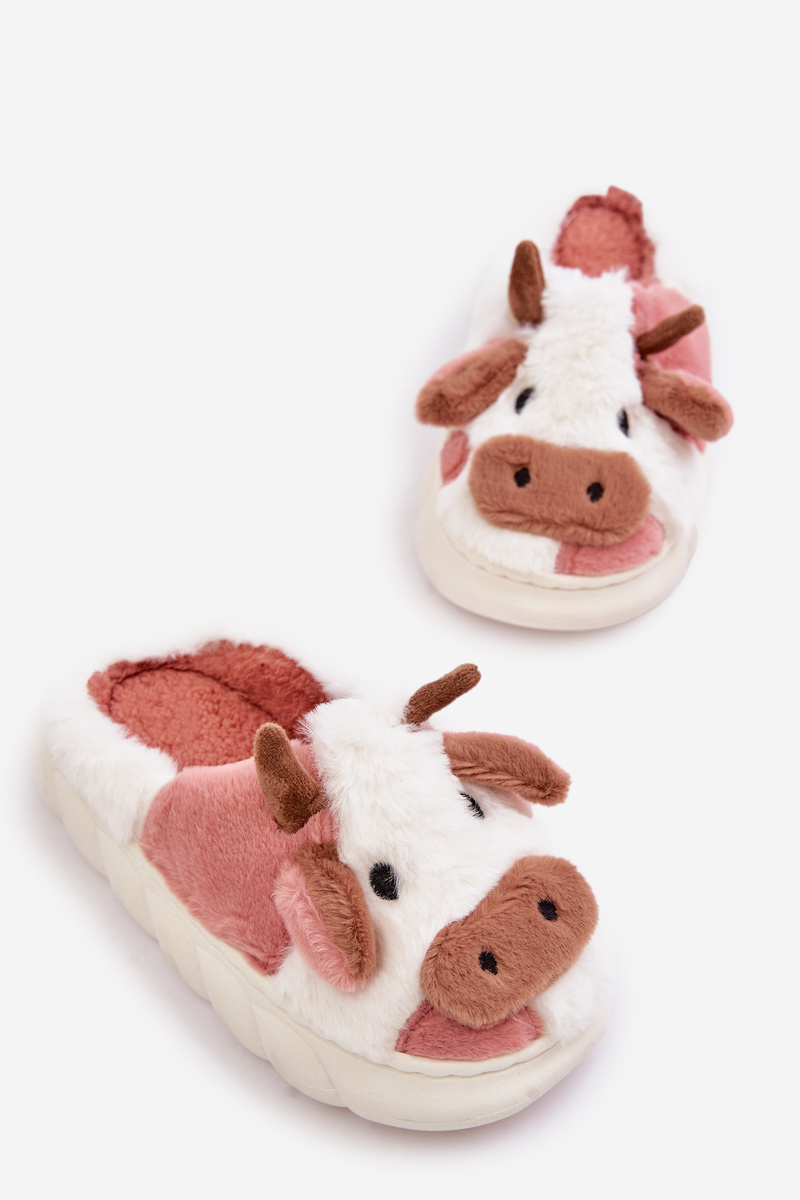 Дитячі пухнасті тапочки з мотивом корови, рожевий таморрін