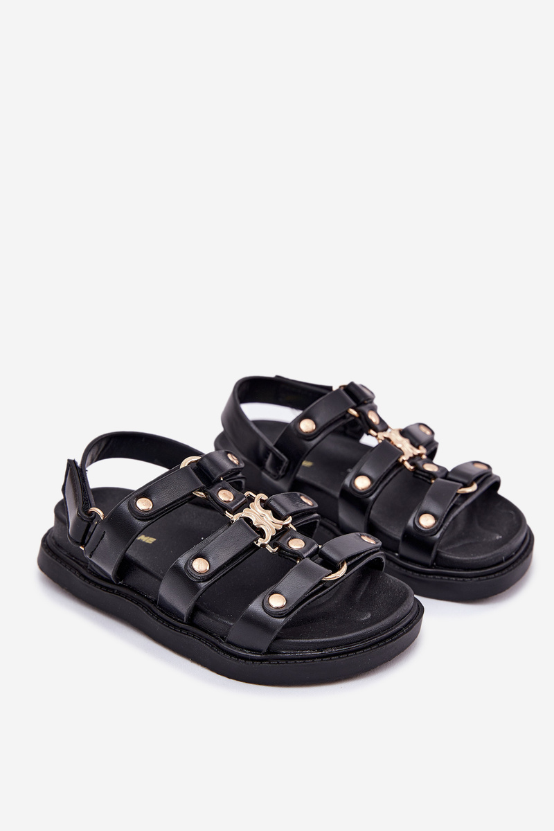 Дитячі сандалі з золотим декоративним елементом чорні Lunessa