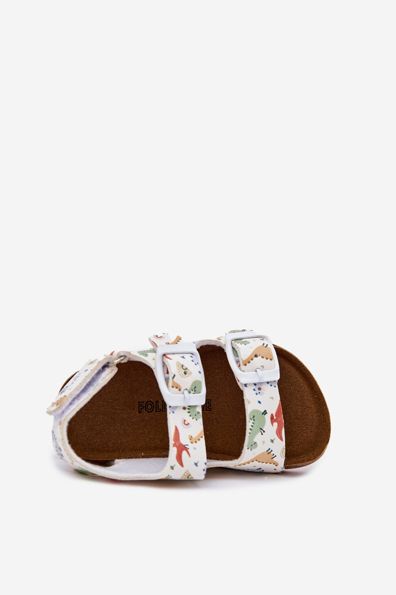 Дитячі сандалі на корковій підошві з пряжками динозаври багатокольорові Thessa