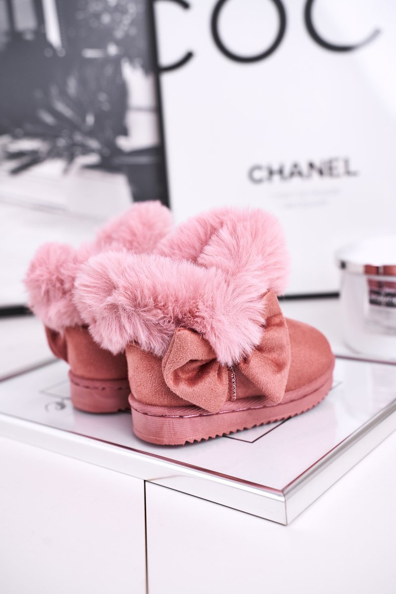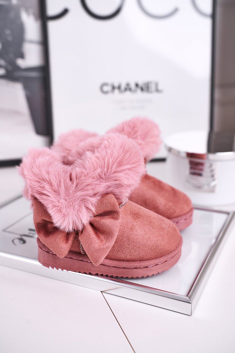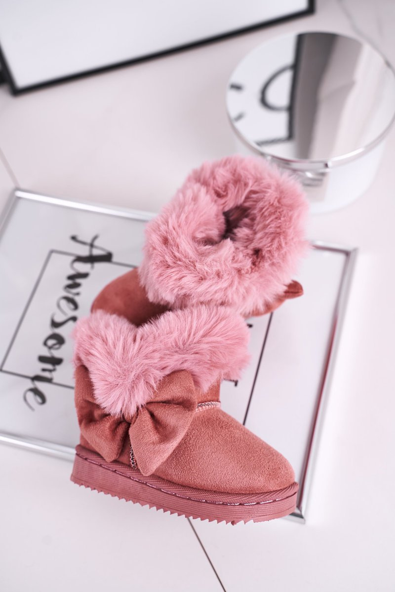 Дитячі снігові черевики з хутром і бантом рожеві Vella