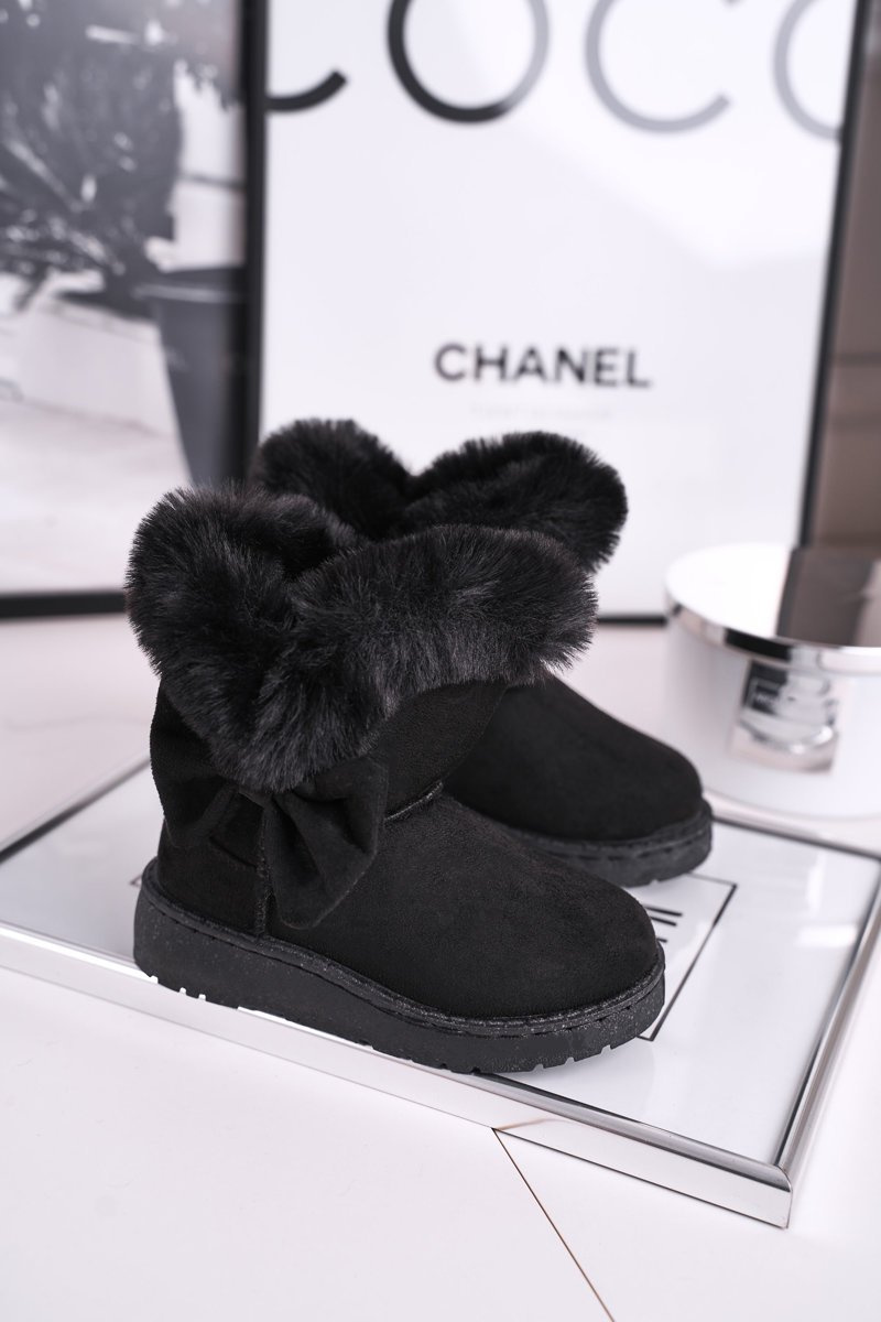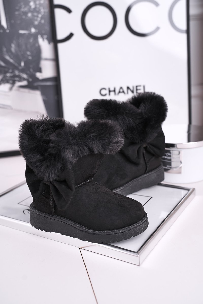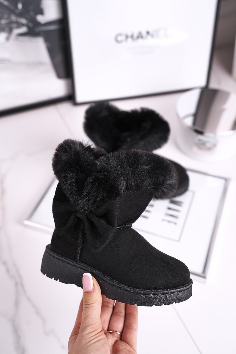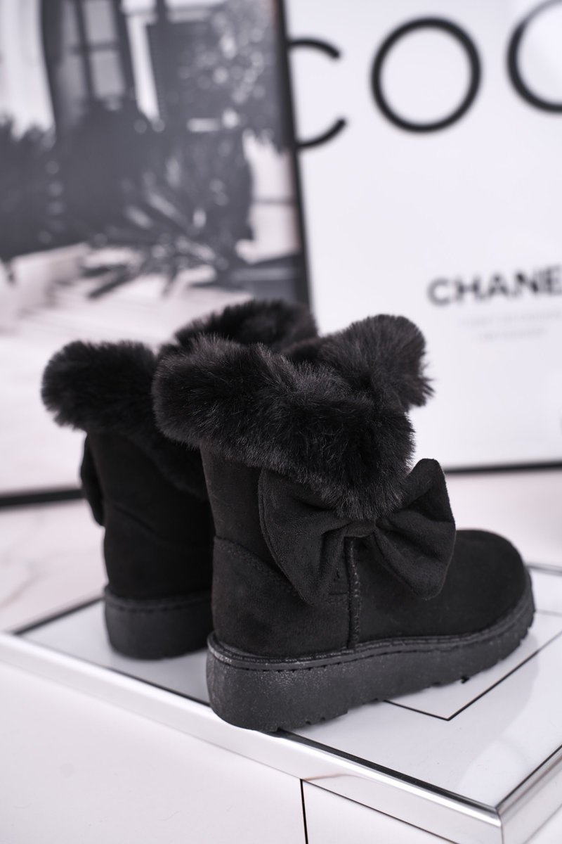 Дитячі снігові черевики з хутром і бантом чорні Vella