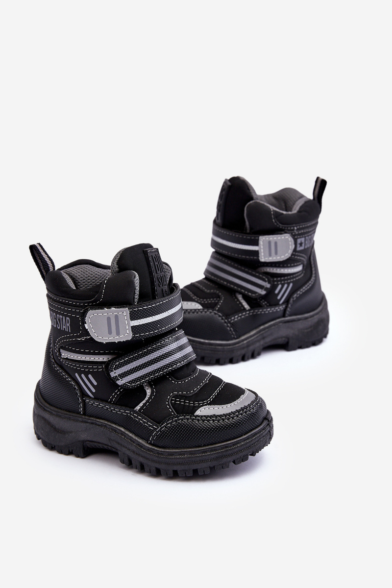 Дитячі снігові черевики на шнурівці Чорні Велика Зірка MM374129
