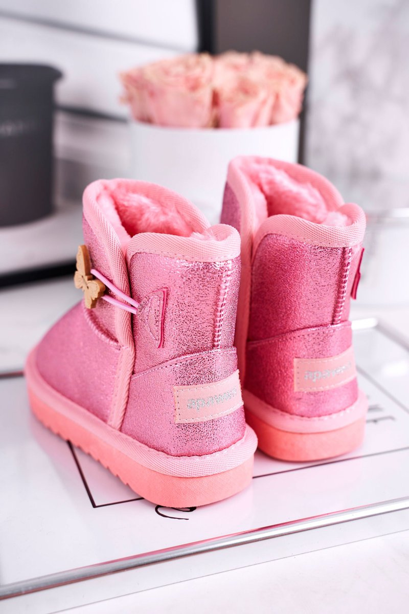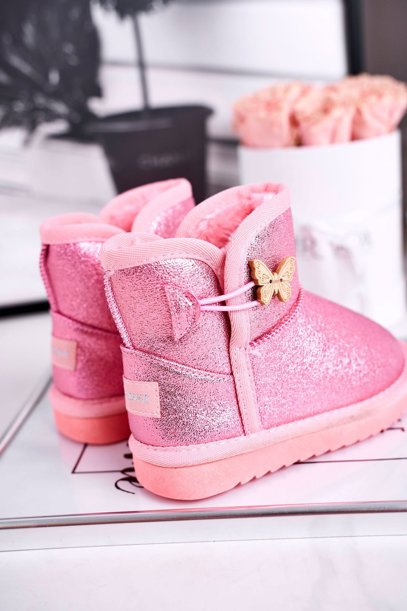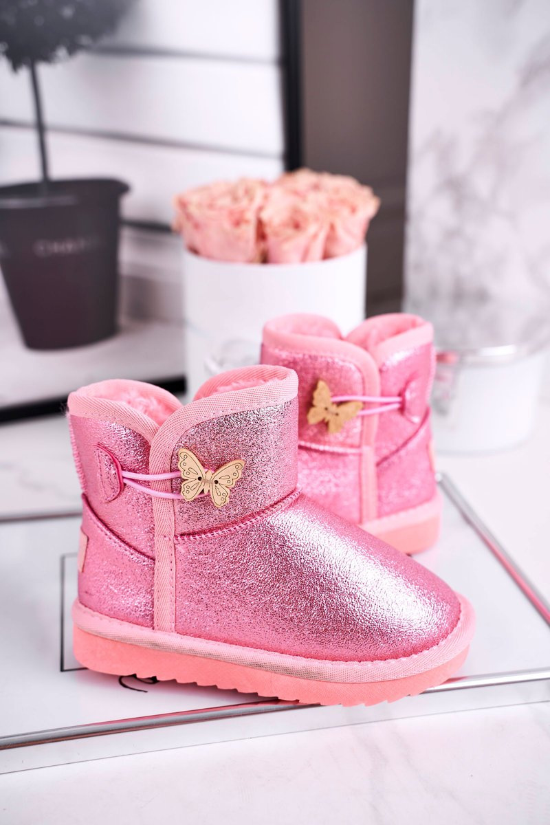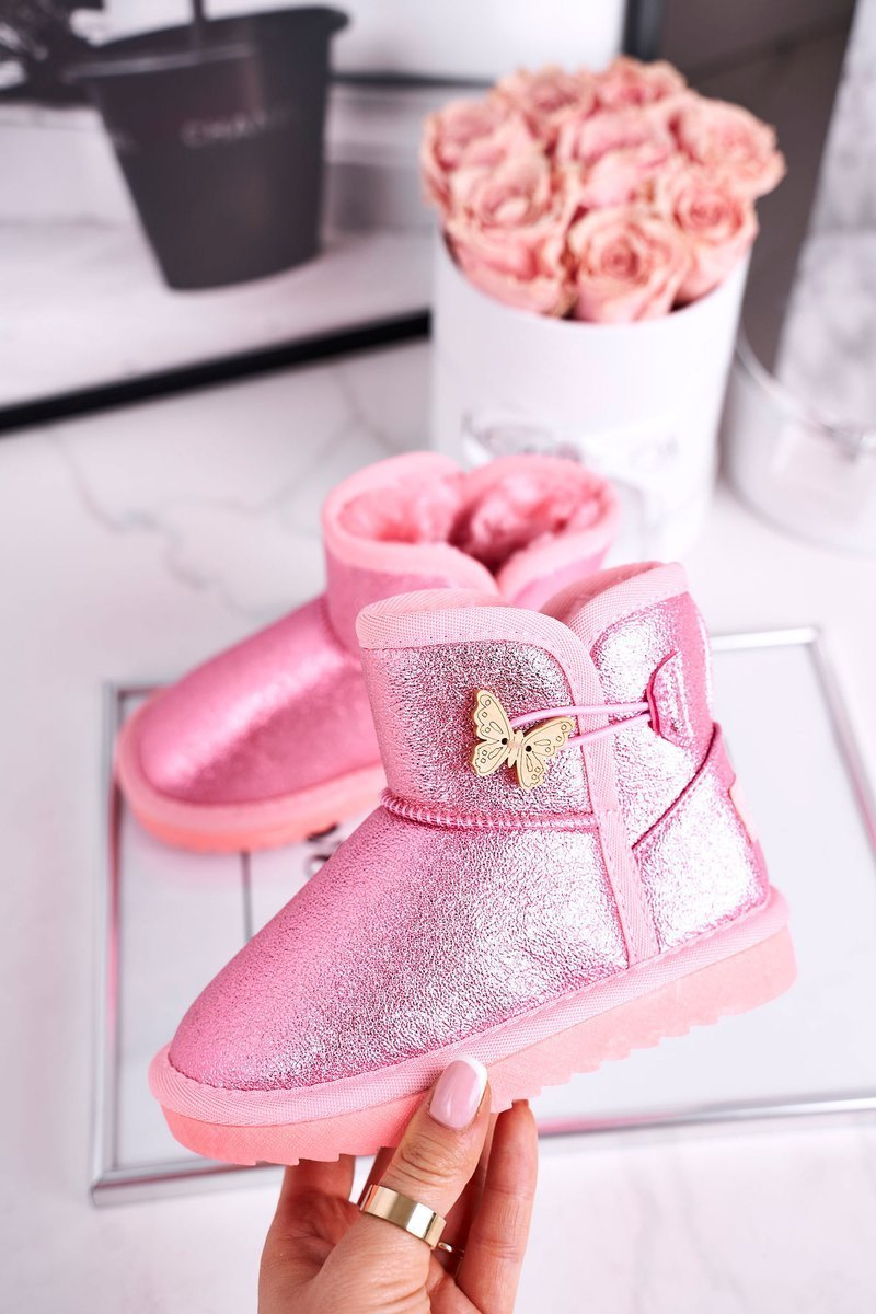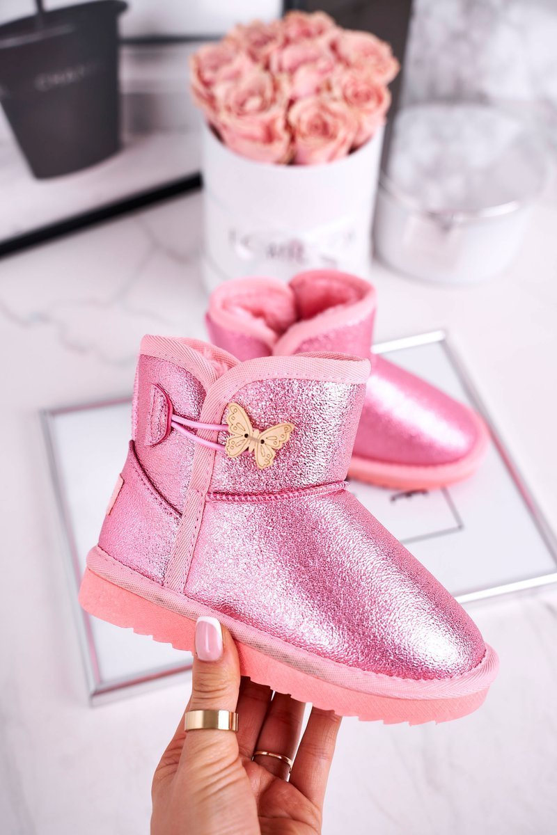Дитячі снігові черевики теплі з метеликом рожеві Cosmic