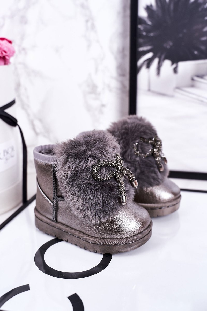 Дитячі снігові черевики утеплені на хутрі темно-сірі Аврора