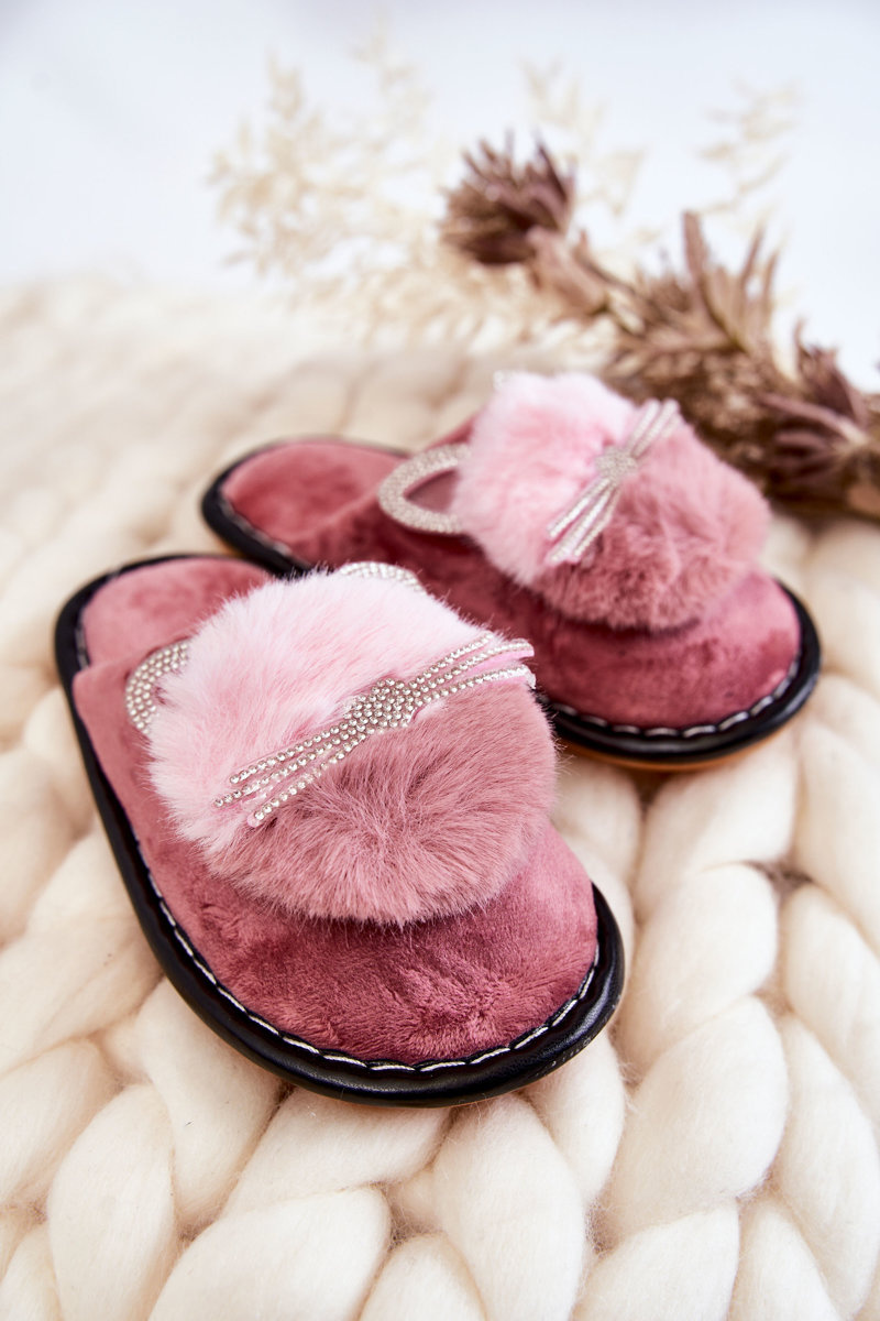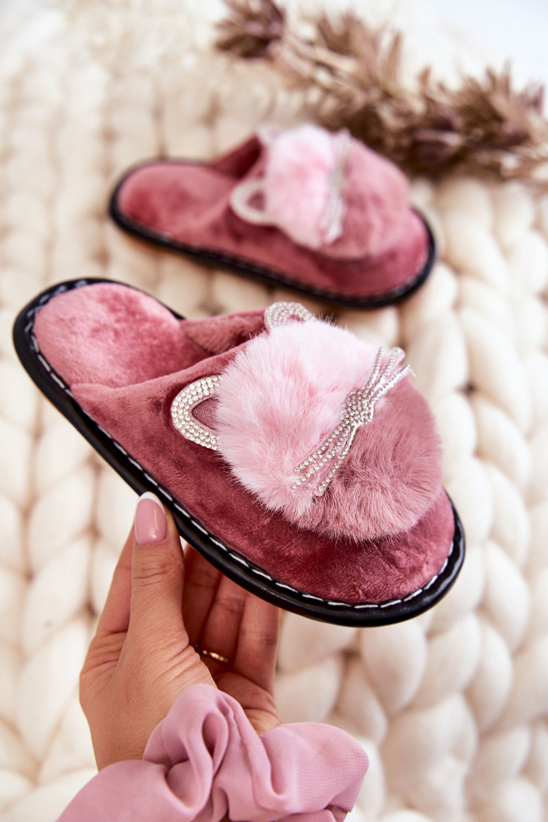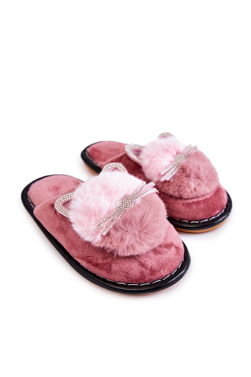 Дитячі тапочки з кошеням і стразами Темно-рожеві Carliss