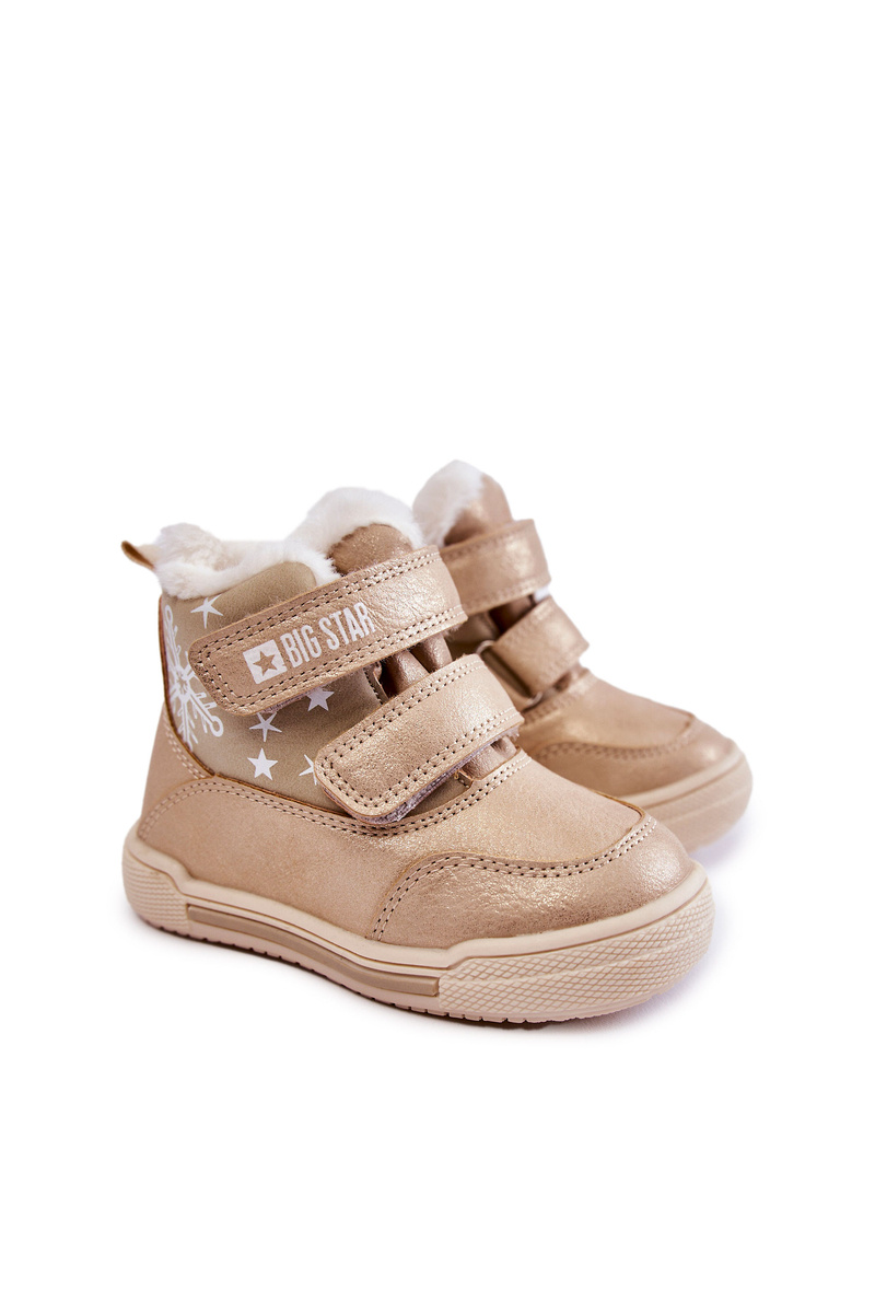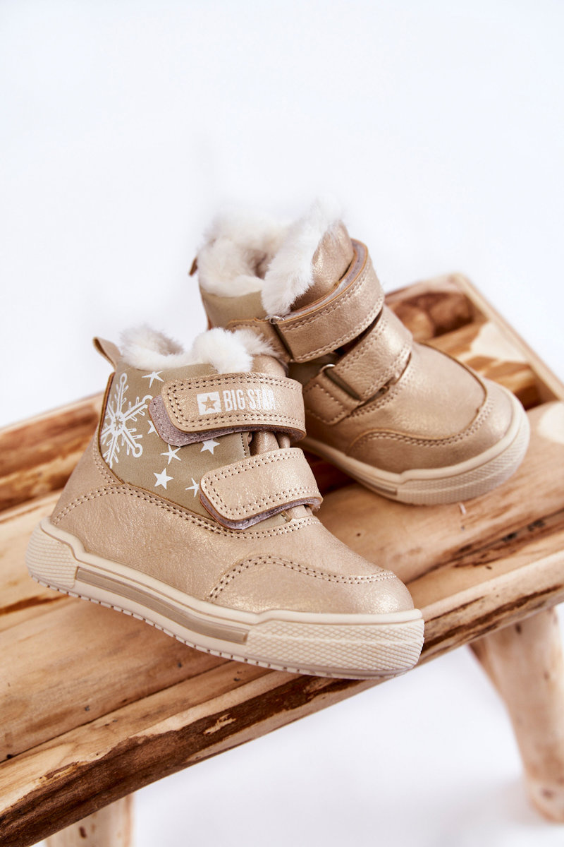 Дитячі теплі черевики на липучці Велика зірка KK374189 Бежево-золотий
