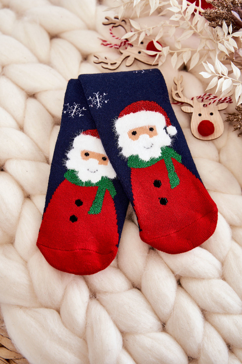 Дитячі термоактивні новорічні шкарпетки Санта Клаус темно-сині