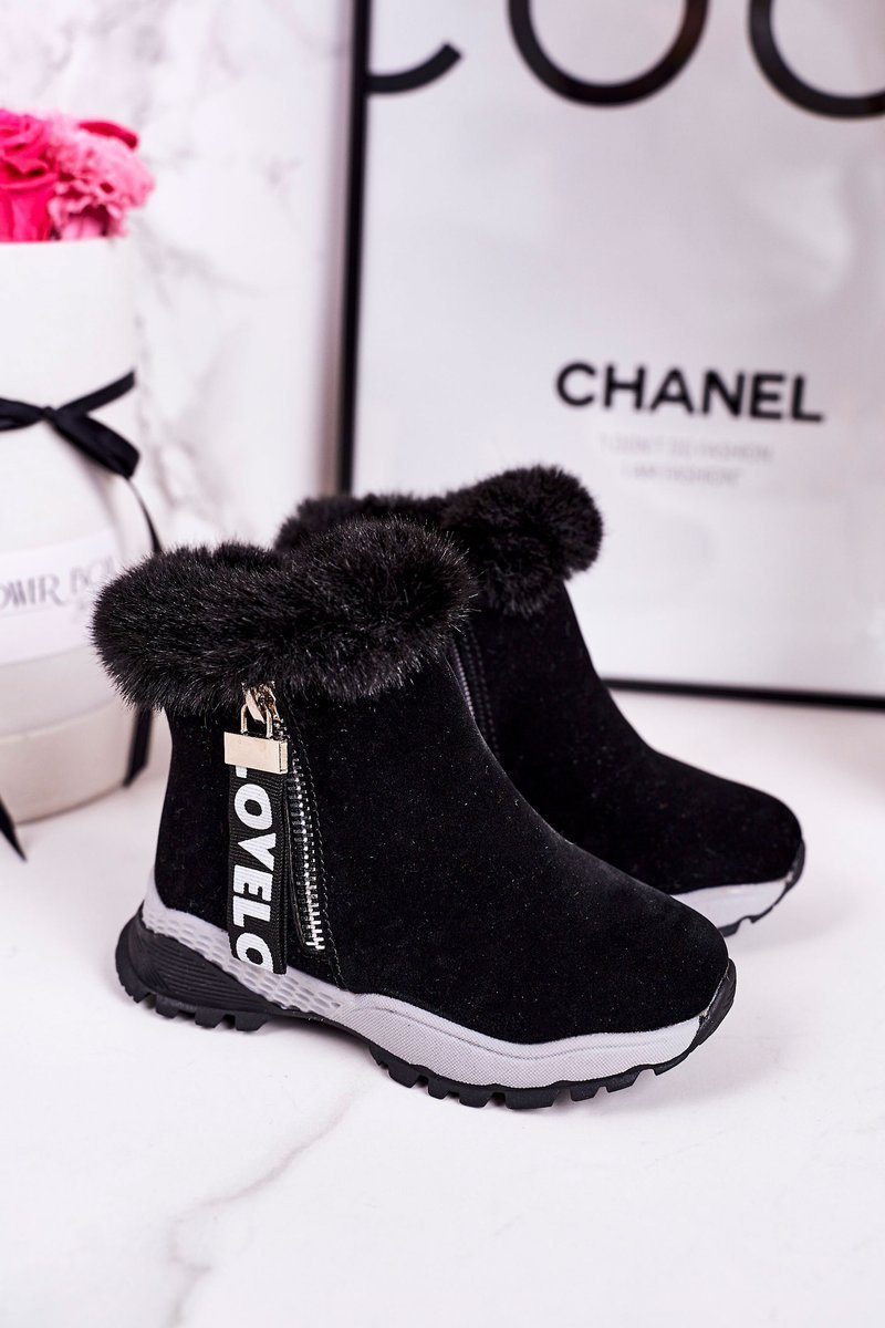 Дитячі утеплені зимові черевики з хутром Black Love-Love