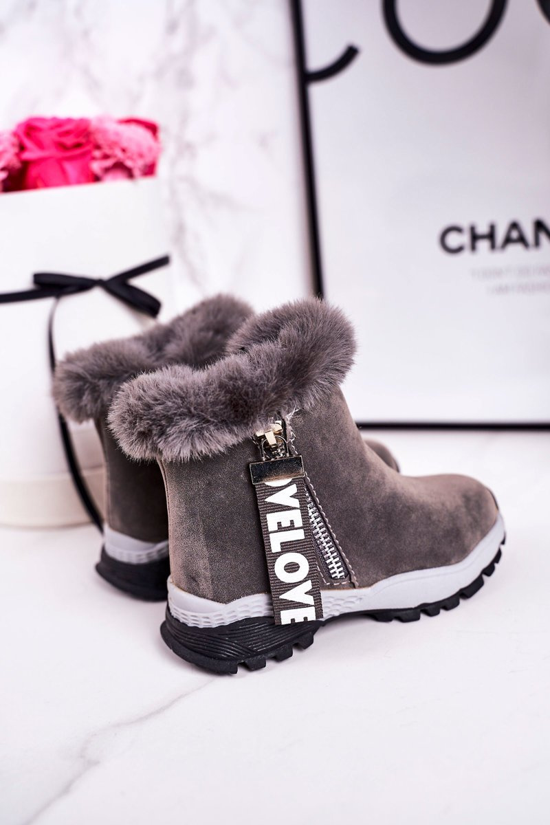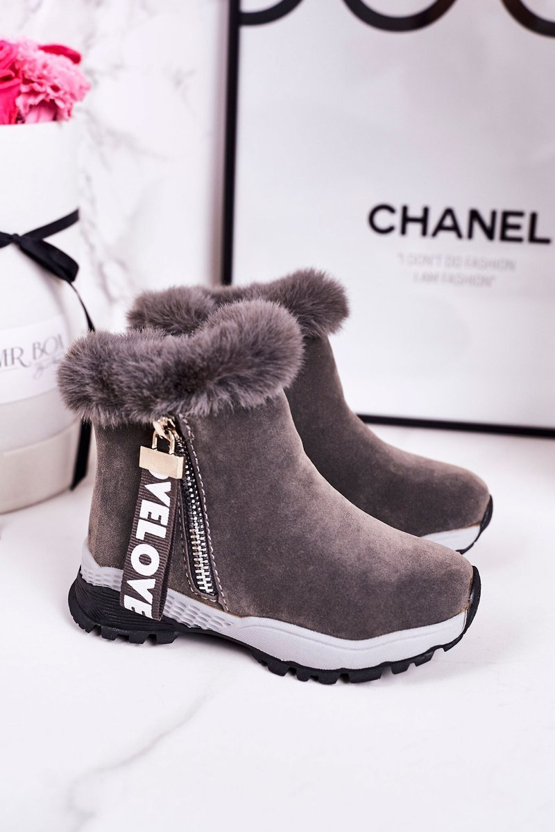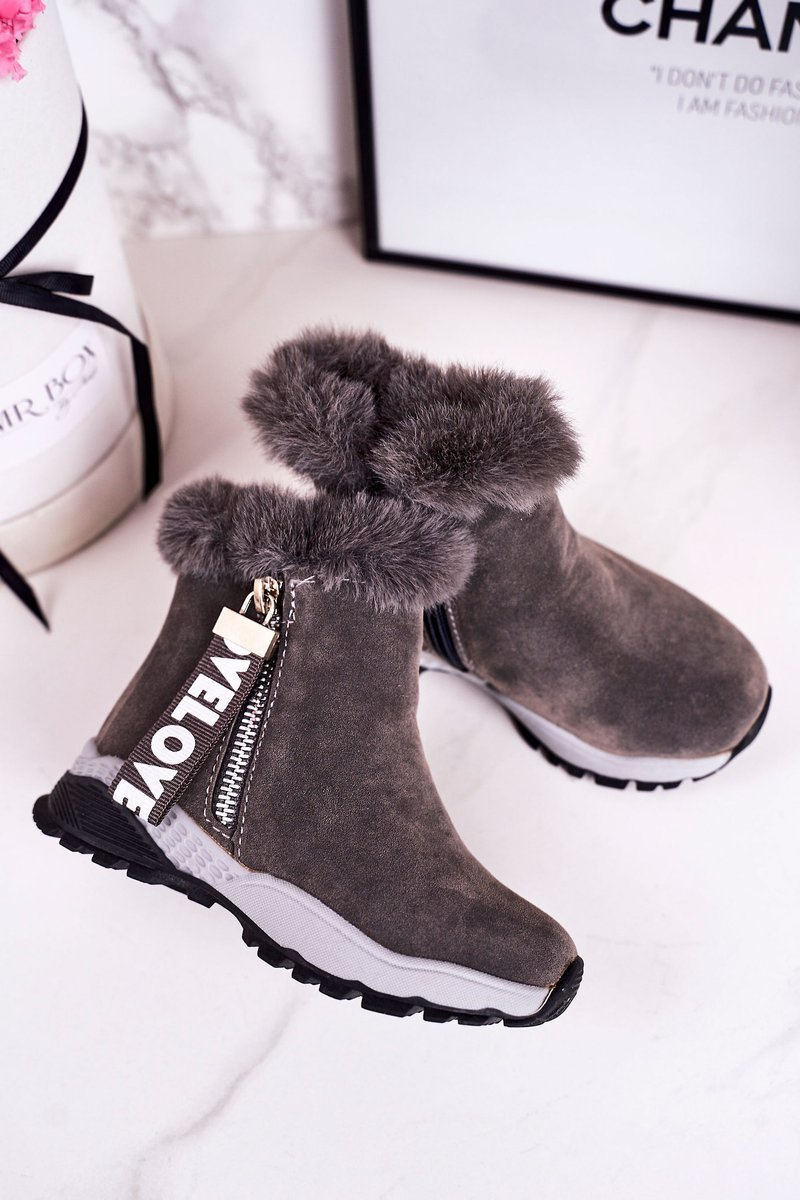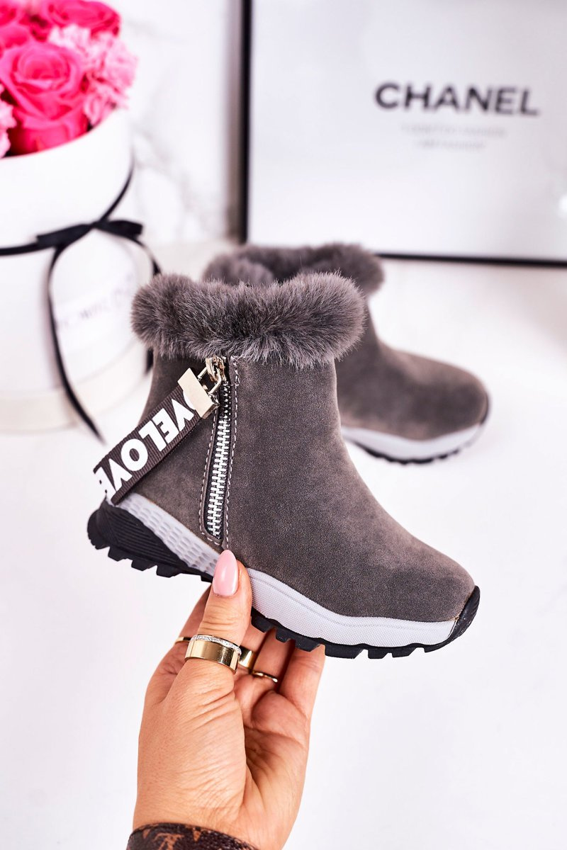 Дитячі утеплені сноуборди з хутром сірі Love-Love