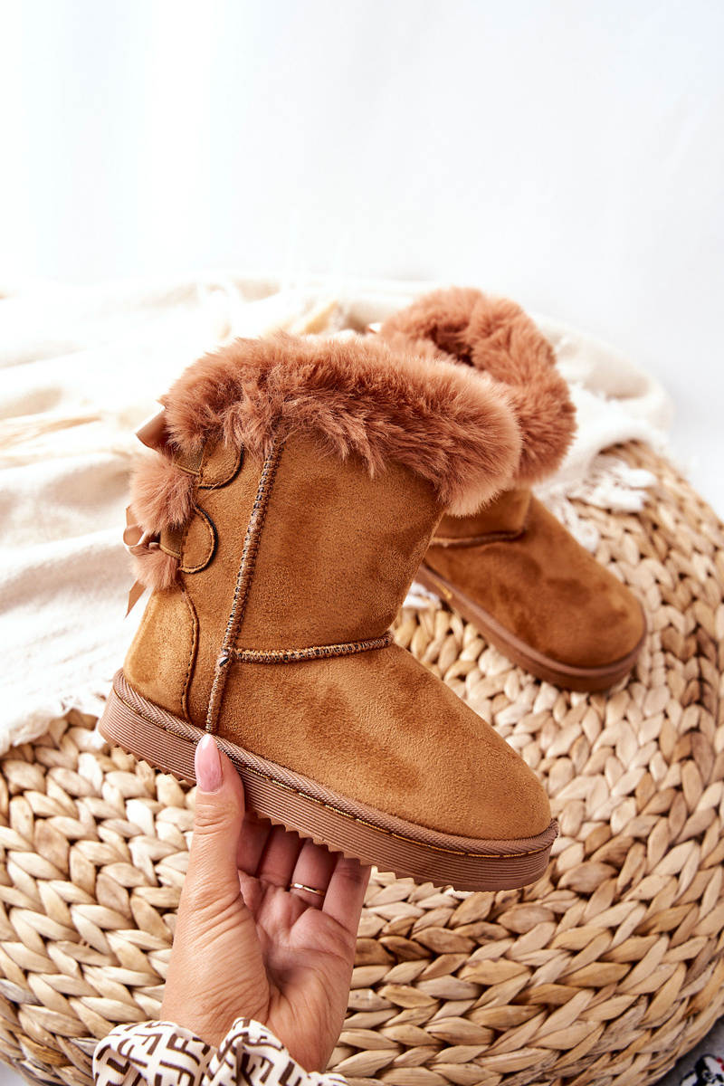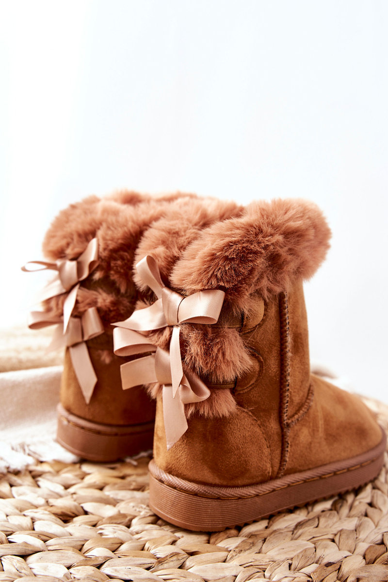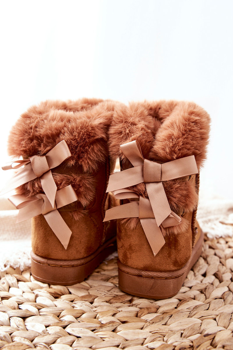 Дитячі утеплені снігові черевики з бантами кольору хакі в стилі фанкі