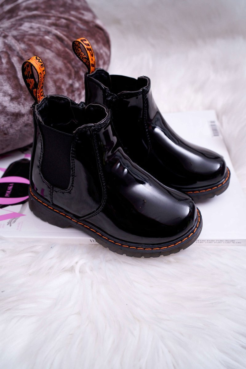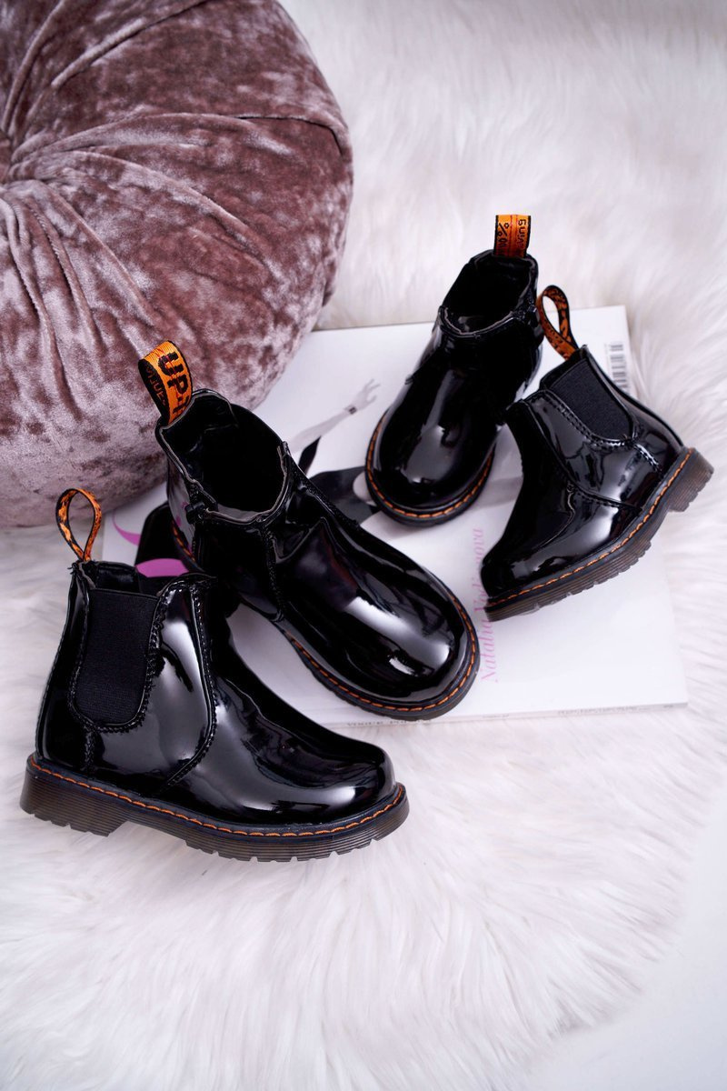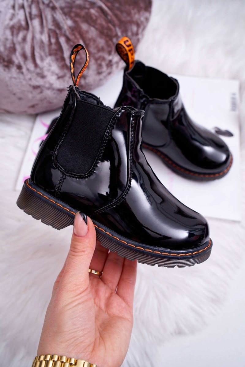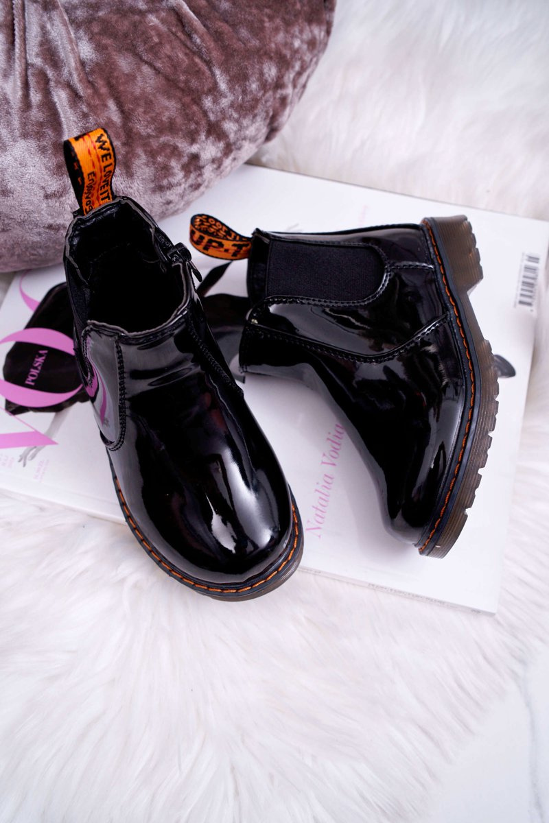 Дитячі чоботи-розминки на блискавці лаковані Black Gustro