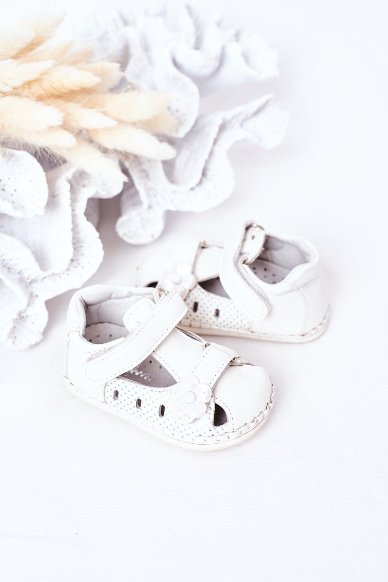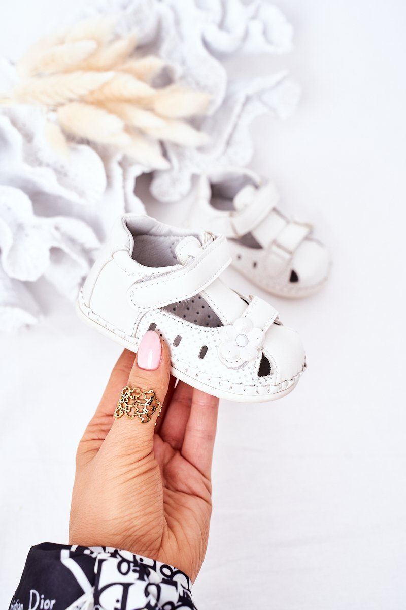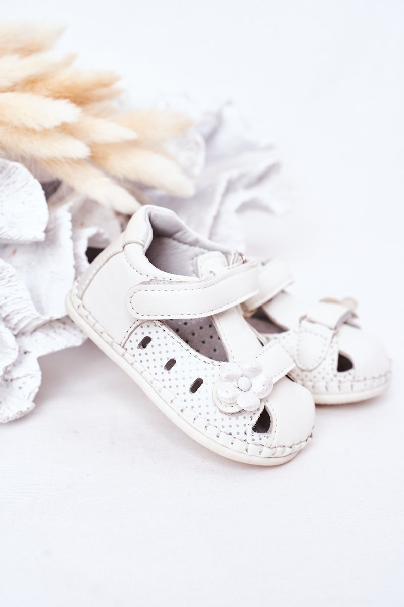 Дитячі шкіряні босоніжки на липучці білі квіти
