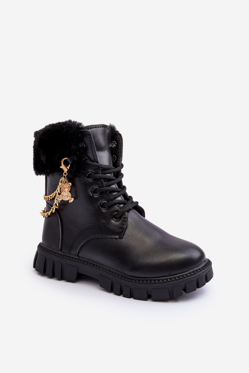 Дитячі шкіряні утеплені черевики з ланцюжком Black Cadia