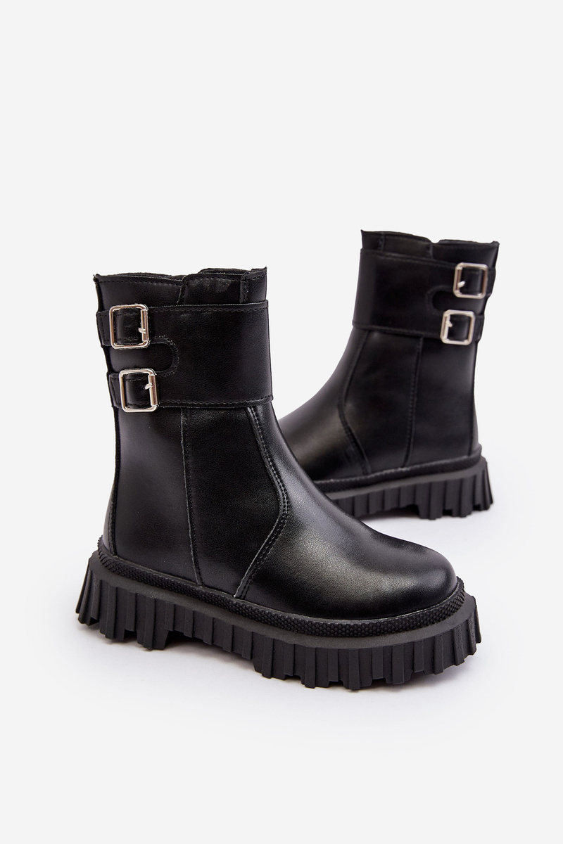 Дитячі шкіряні чоботи з пряжками Чорна Хлора
