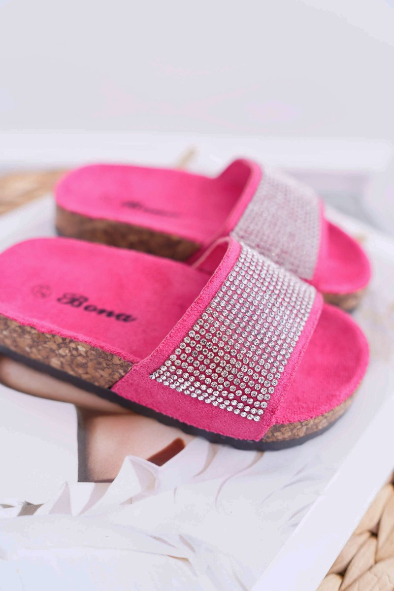 Дитячі шльопанці з пробковими кристалами кольору фуксії Malena