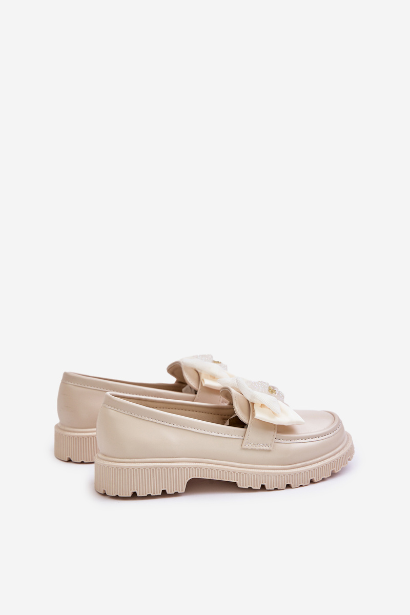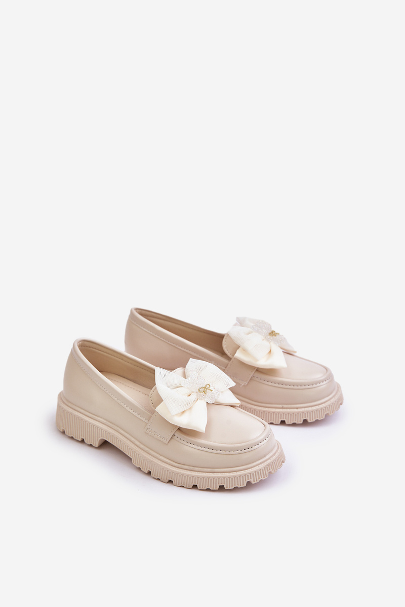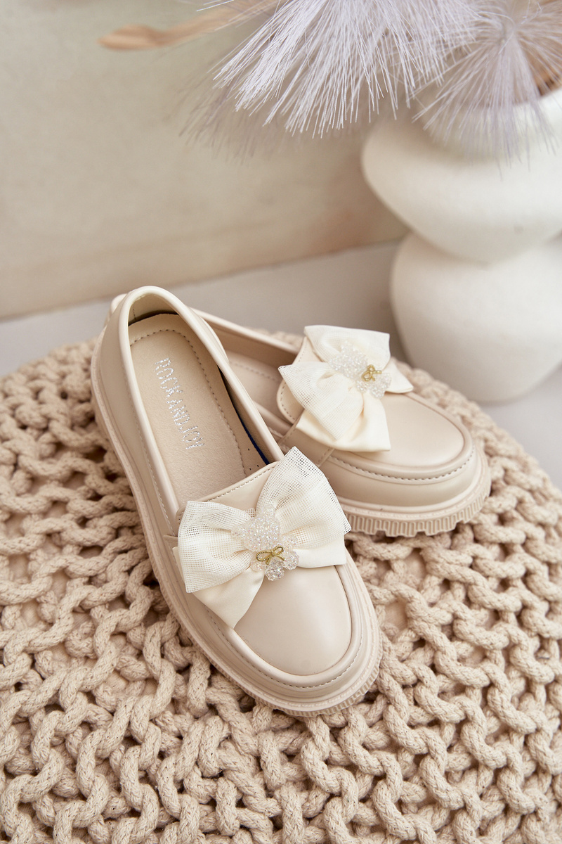 Дівчачі мокасини з бантом з еко шкіри Avallesa бежевого кольору