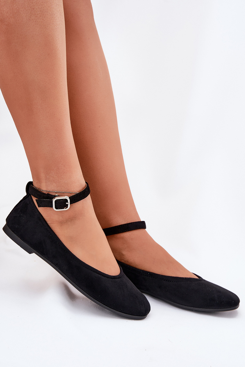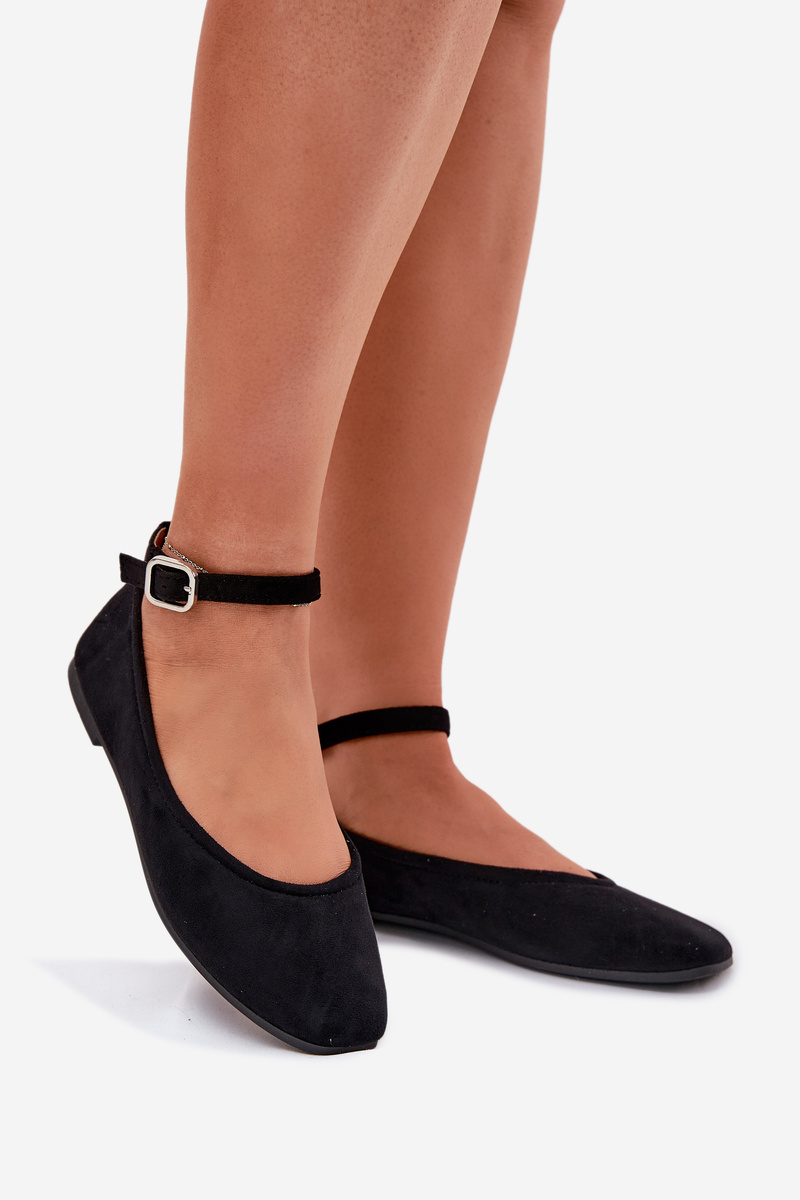 Еко Замшеві Балетки З Ремінцем І Пряжкою Чорні Deomira
