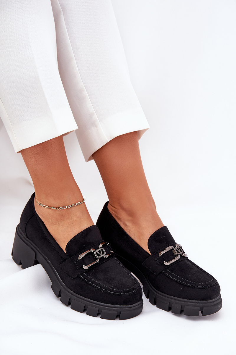Еко Замшеві Напівчеревики Для Жінок З Декором 39921 Чорні Vinceza