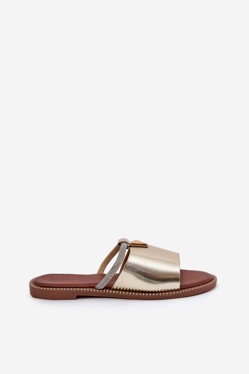Еко Шкіряні Сандалі На Плоскому Каблуці З Декоративною Стрейчевою Золотою Hirtewi