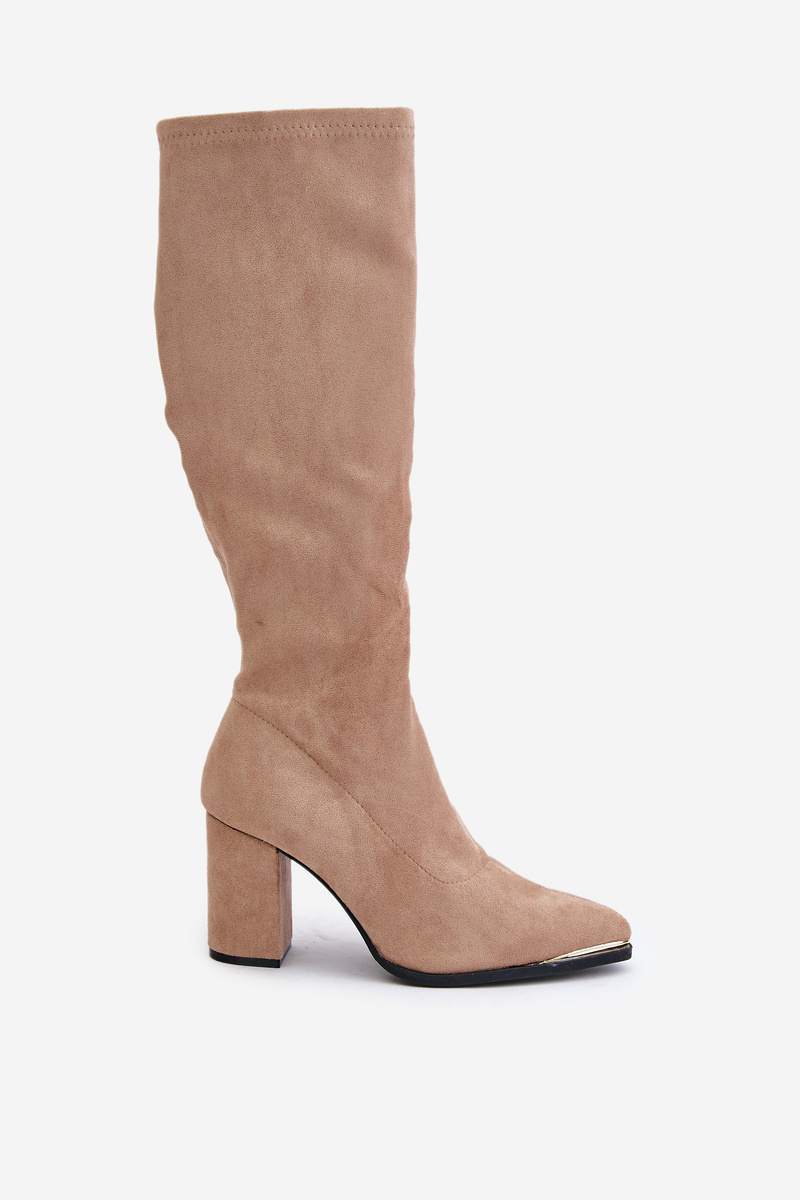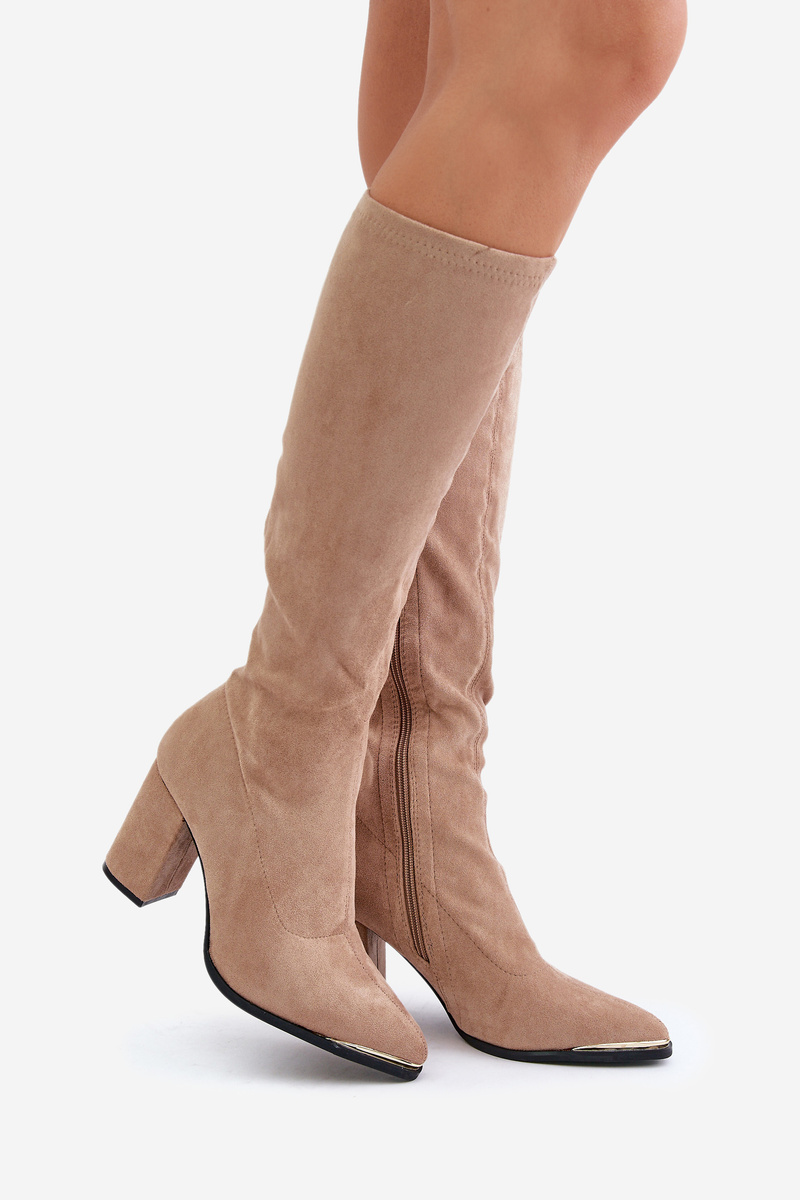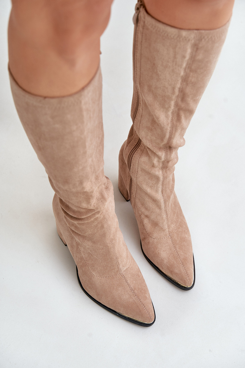 Еко-замшеві чоботи на блочному каблуці, бежевий батира