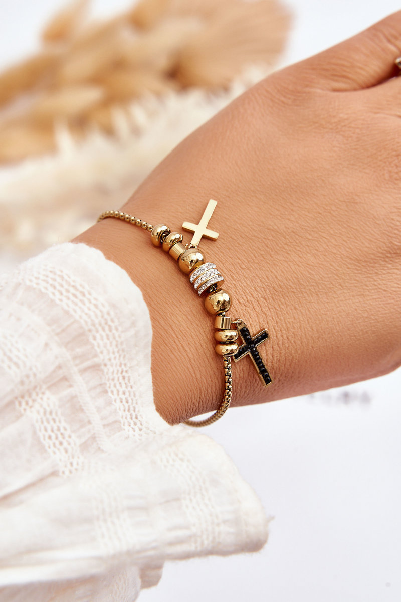 Унікальний та елегантний жіночий браслет з нержавіючої сталі. Має можливість регулювати довжину. Браслет тонкого плетіння з більш масивним декором у вигляді хрестиків і цирконів. Виглядає надзвичайно елегантно. Ви можете носити його як доповнення до багатьох стилів. Обов’язково ознайомтеся з іншими нашими пропозиціями доступних моделей прикрас. Чудова модель, обов'язково її мати!