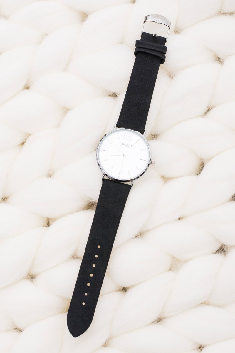 Елегантний шкіряний чорний жіночий годинник Ernest