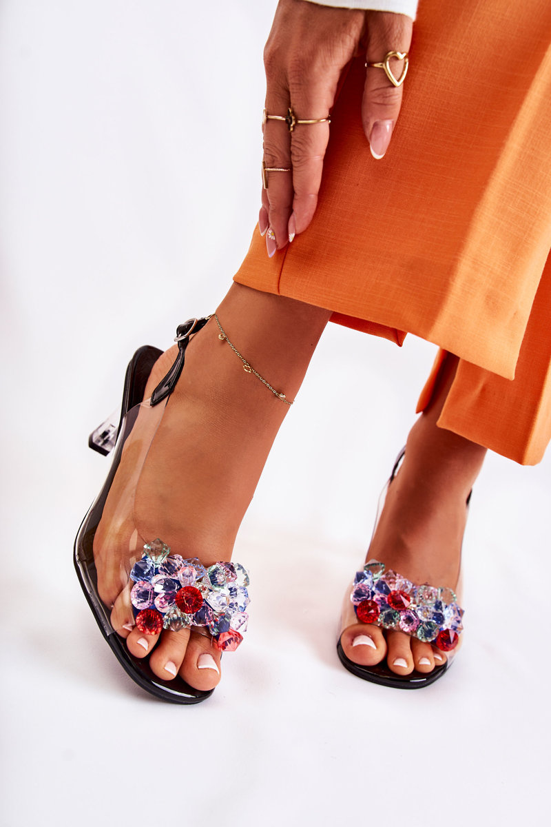Красиві босоніжки на високих підборах у вигляді прозорого тонкого стовпчика. Спереду мають орнамент у вигляді імітації кристалів. М'яка і профільована устілка виготовлена з натуральної шкіри. Комфорт – головне! Модний крій порадує багатьох любительок високих підборів! Застібається на пряжку з регульованим ремінцем. Ця модель обов'язково повинна бути у вашій колекції взуття! При виборі розміру скористайтеся таблицею розмірів.
