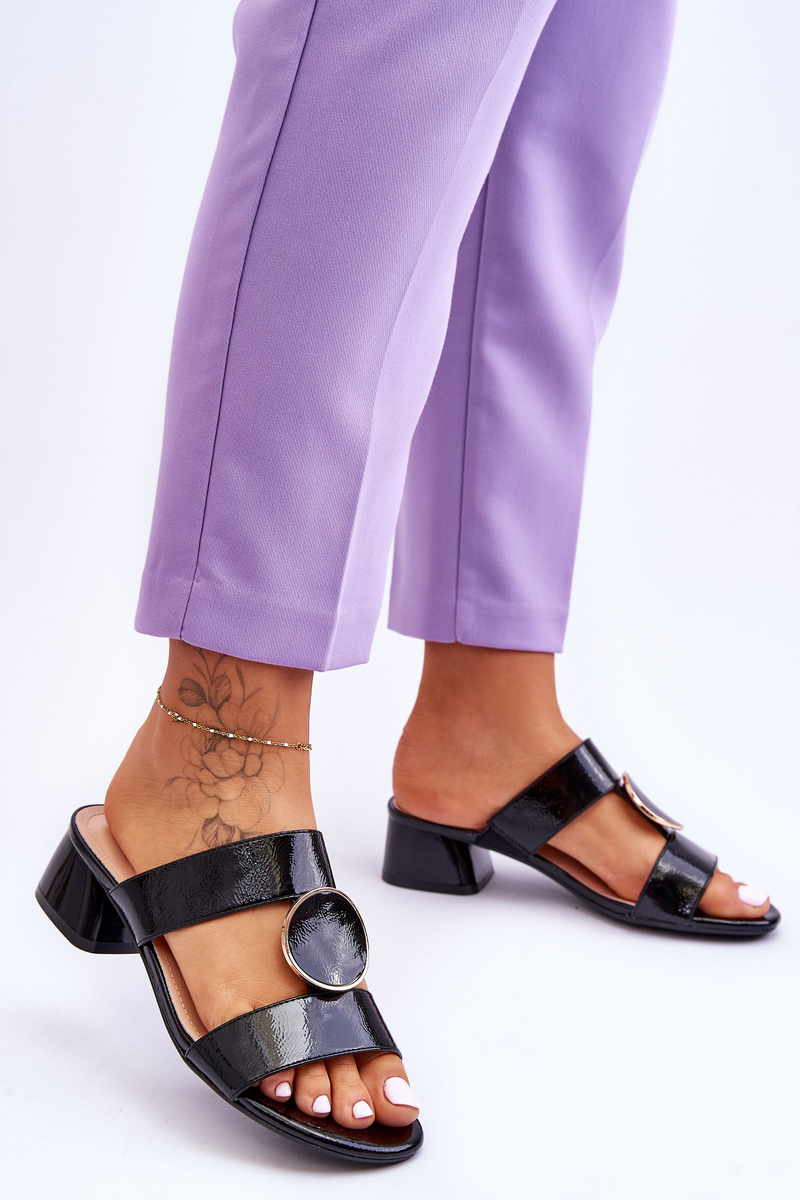 Елегантні жіночі тапочки виготовлені з еко шкіри. Ця модель кріпилася на каблук у вигляді колодки. Вони мають прикрасу між смугами у формі кола. М'яка устілка забезпечить комфорт навіть протягом дня і виготовлена з натуральної шкіри. Модний класичний крій з відкритим закругленим носком. Обираючи розмір, орієнтуйтеся на таблицю розмірів.