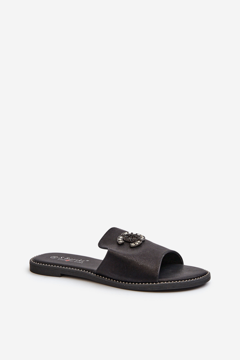Елегантні жіночі блискучі тапочки з декором S.Barski KV27-050 Чорні