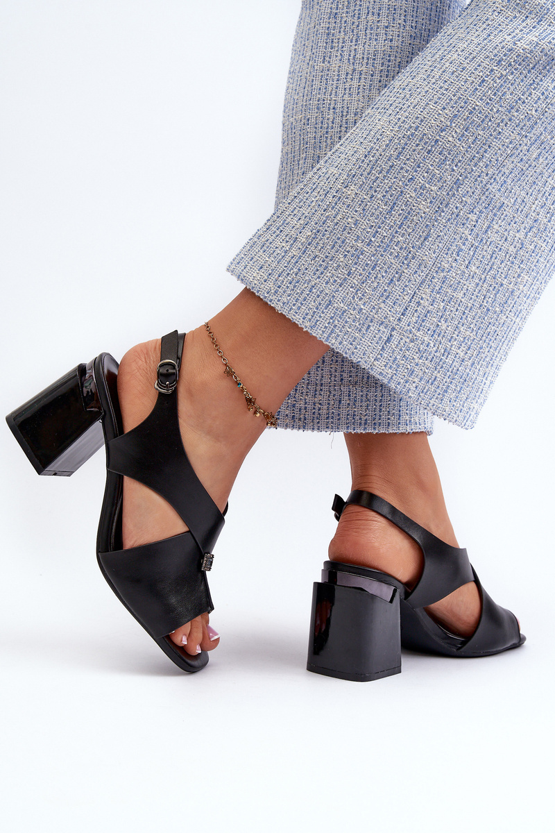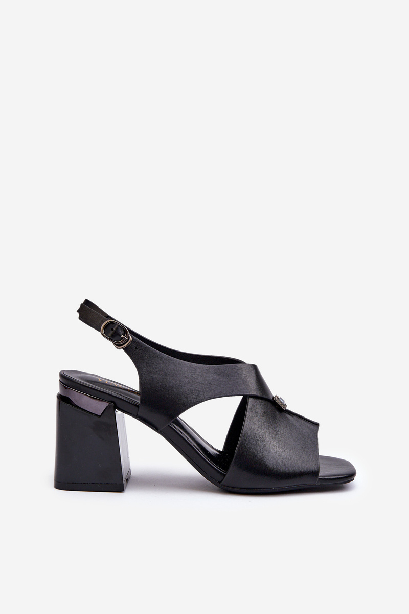 Елегантні жіночі босоніжки на високих підборах з чорної екошкіри Asellesa