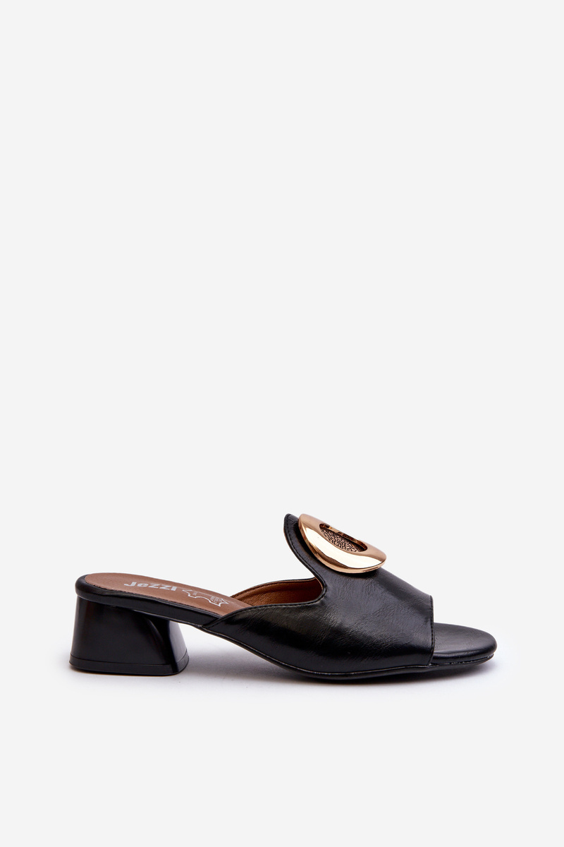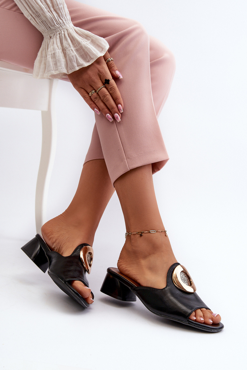 Елегантні жіночі босоніжки на низькому каблуці з золотим декором Black Uzimila