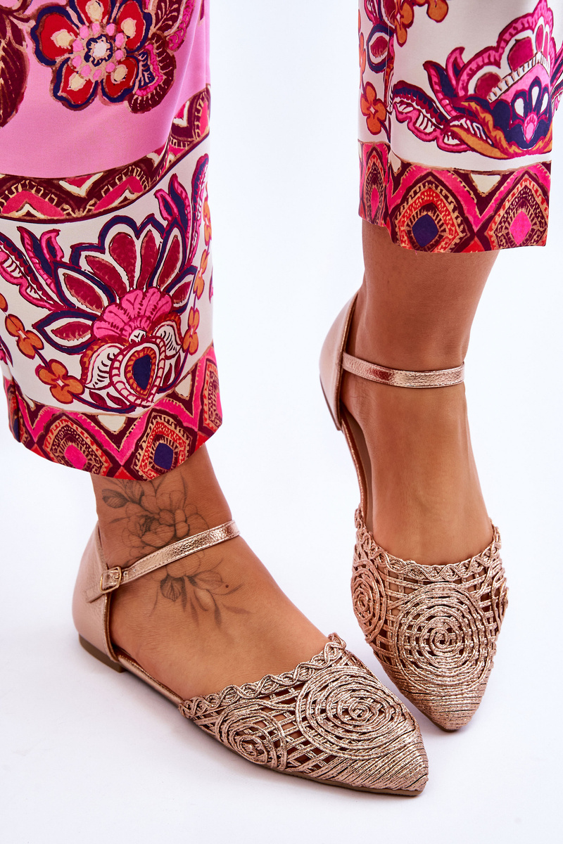 Елегантні жіночі босоніжки на плоскій підошві рожевого золота Sheia