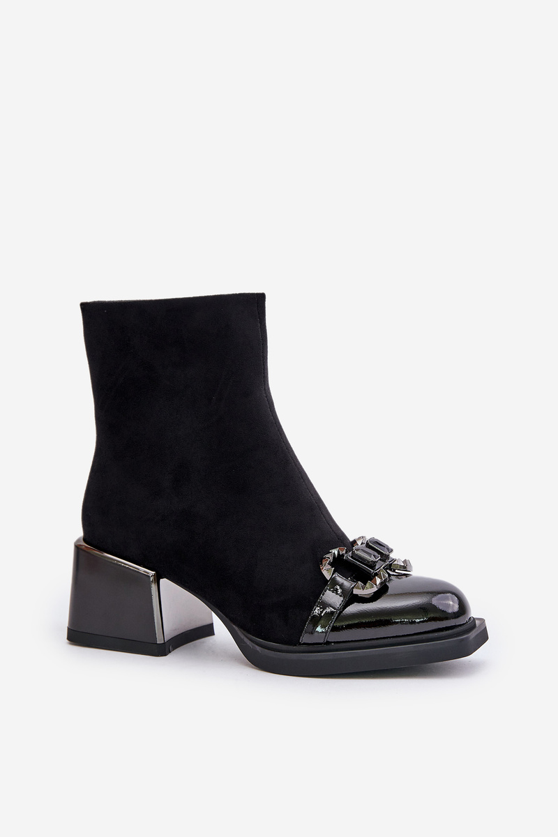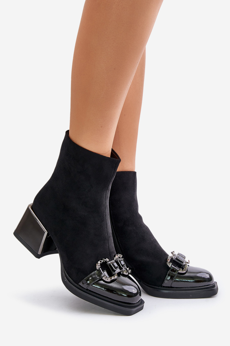 Жіночі ботильйони з якісної еко замші. Встановлений на масивний каблук, що забезпечує стабільність під час кожного кроку. Прикрашений спереду, що додає виняткового шарму. На блискавці. Зсередини утеплено взуттєвим флісом. Цей елегантний дизайн неодмінно доповнить багато осінніх і зимових образів! Обираючи розмір, орієнтуйтеся на таблицю розмірів.