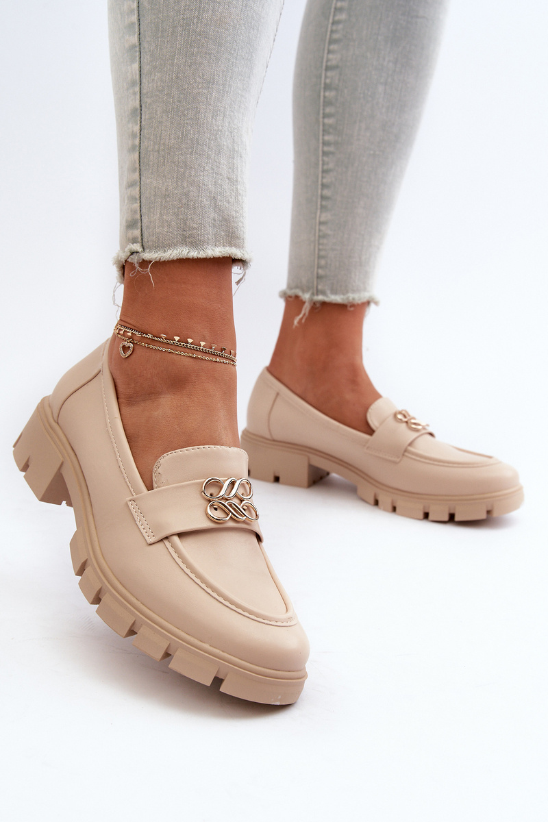 Елегантні жіночі лофери із золотим декором бежеві Tosisa