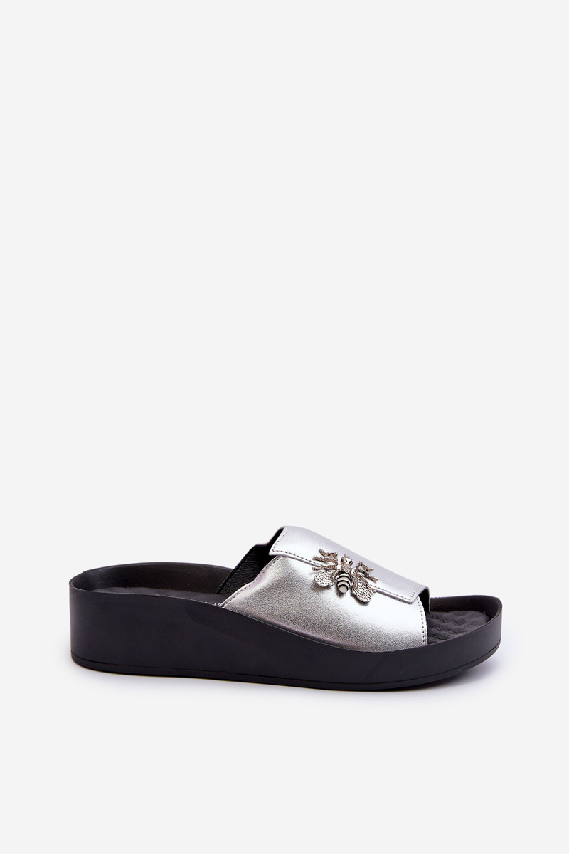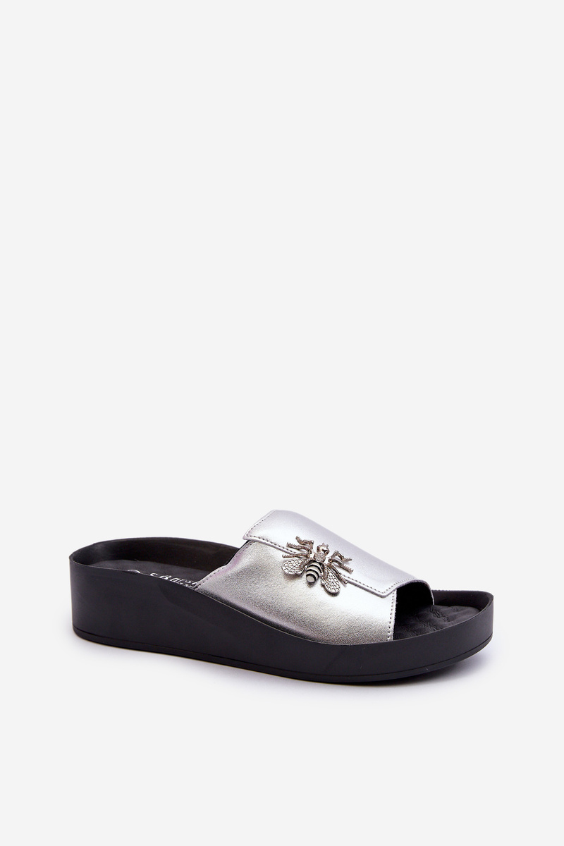 Елегантні жіночі тапочки з декором Натуральна шкіра S.Barski KV27-015 Silver