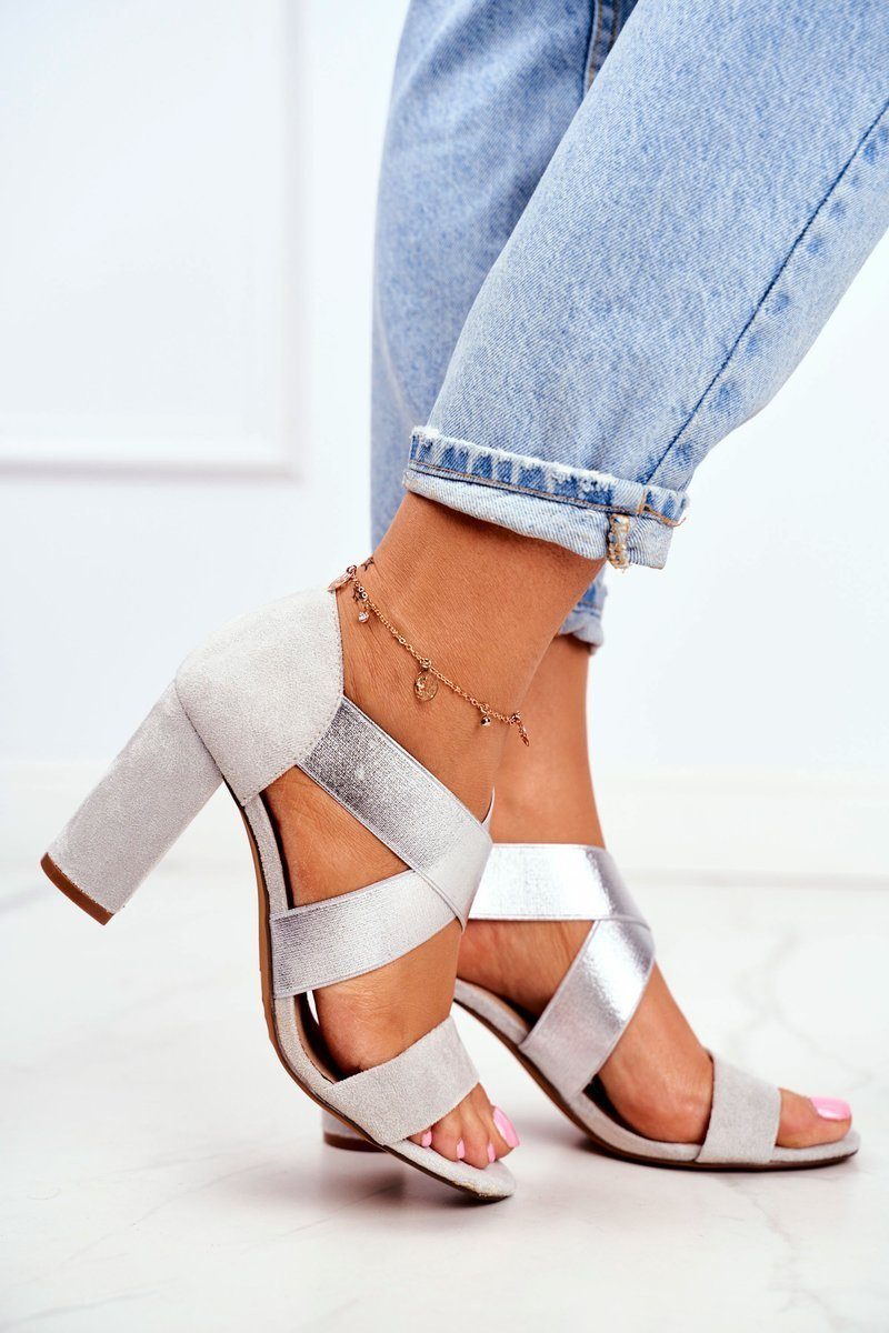 Елегантні сліпони на блочному каблуці сіро-сріблясті Varina