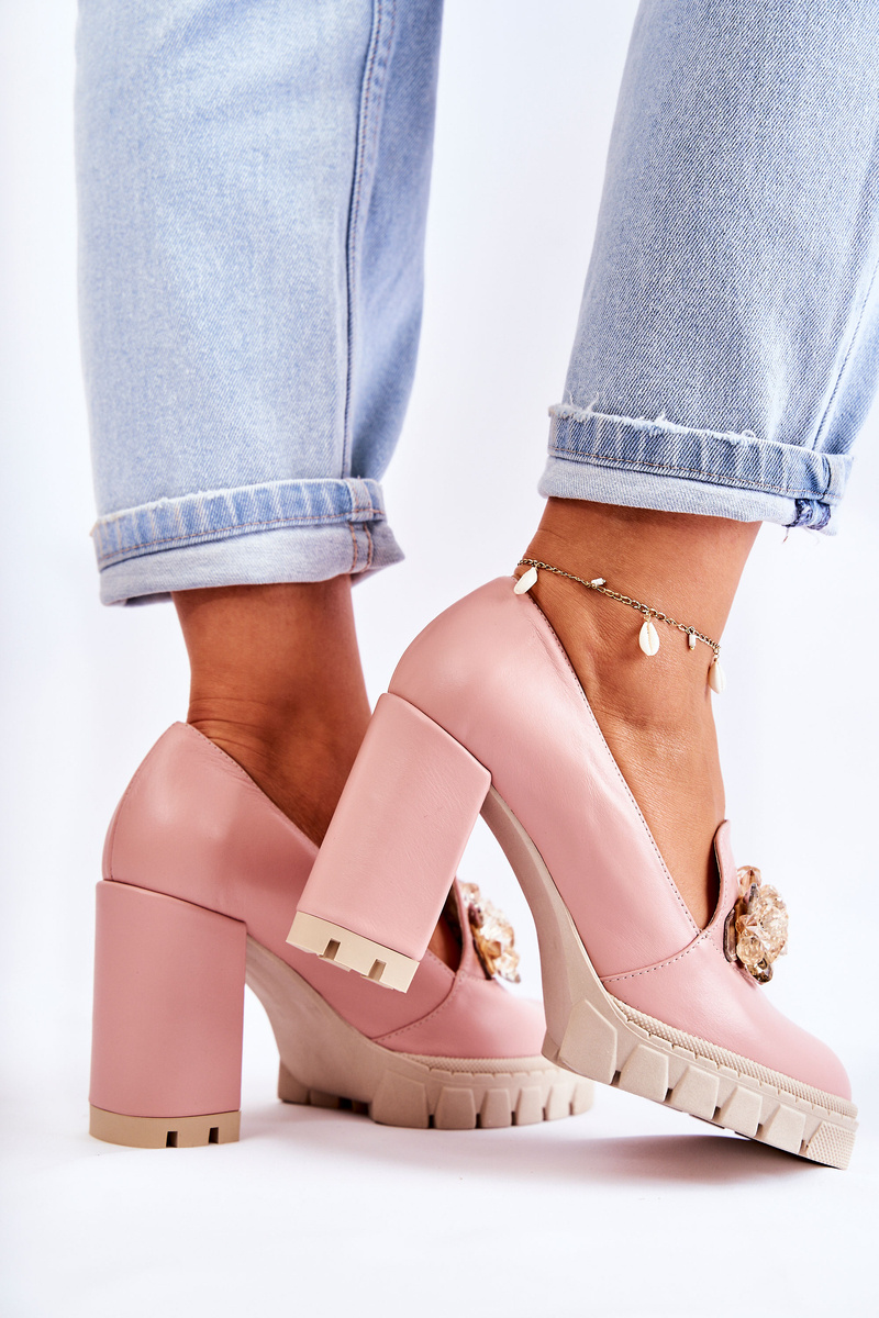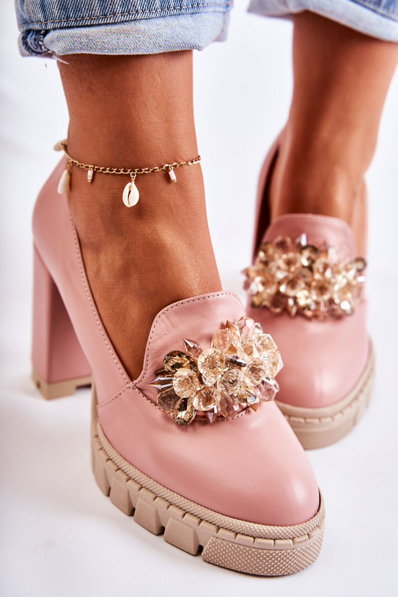 Чудові човники на масивному каблуці у вигляді шпильки та платформи. Підошва Trapper робить це взуття комфортним і стійким під час використання. На лицьовій частині взуття мають орнамент у вигляді імітації кольорових кристалів. М'яка устілка виготовлена ​​з натуральної шкіри. Комфорт – головне! Модний крій порадує багатьох любительок високих підборів! Ця модель обов'язково повинна бути у вашій колекції взуття! При виборі розміру скористайтеся таблицею розмірів.