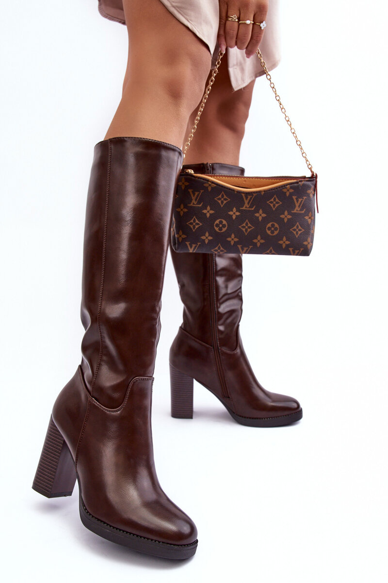 Елегантні шкіряні чоботи на каблуці коричневого кольору Felsha