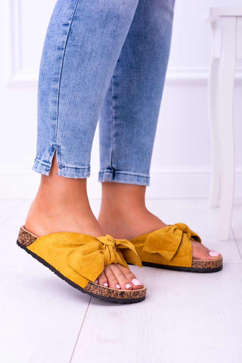 Класична модель шльопанців з бантами. Доступні в декількох чудових кольорах, тому кожен з вас знайде щось для себе :) М'яка, профільована устілка в поєднанні з м'яким матеріалом еко-замша дозволить вам почувати себе в них дуже комфортно. Не зволікайте, дивіться всю літню колекцію жіночих шльопанців прямо зараз. Розміри занижені, дотримуйтеся таблиці розмірів.